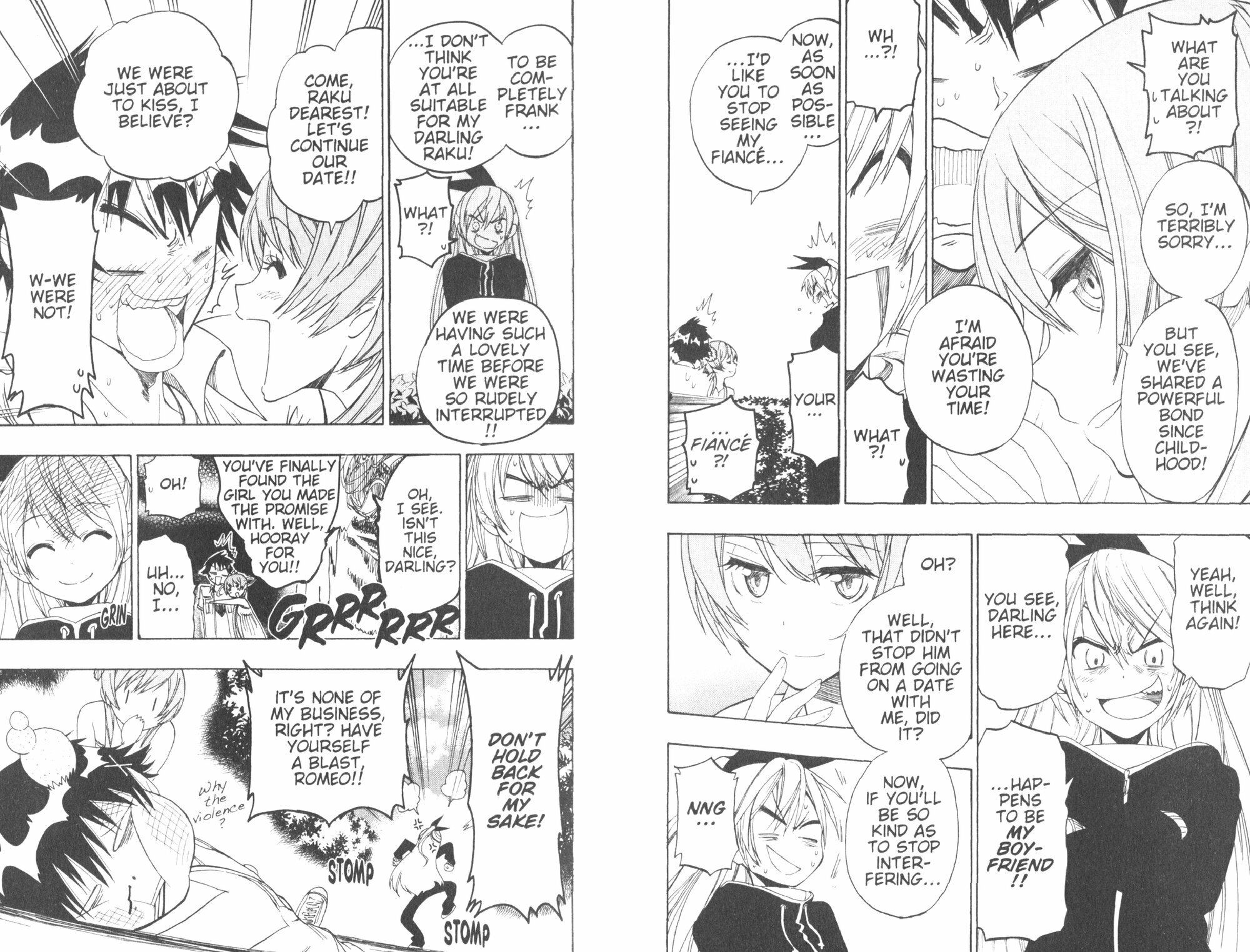 It's hate at first sight when Raku Ichijo first meets Chitoge Kirisaki. But much to their chagrin, the two are forced into a false love relationship to keep the peace between their feuding gangster families. Meanwhile, Raku's still hung up on the girl he made a promise to ten years ago, keeping a pendant around his neck as a memento. The girl, in turn, holds the key that opens the pendant. To Raku's surprise, he discovers two girls have keys from a promise they also make ten years ago, Chitoge and his current crush Onodera! Making matters worse, another girl with a key appears on the scene...