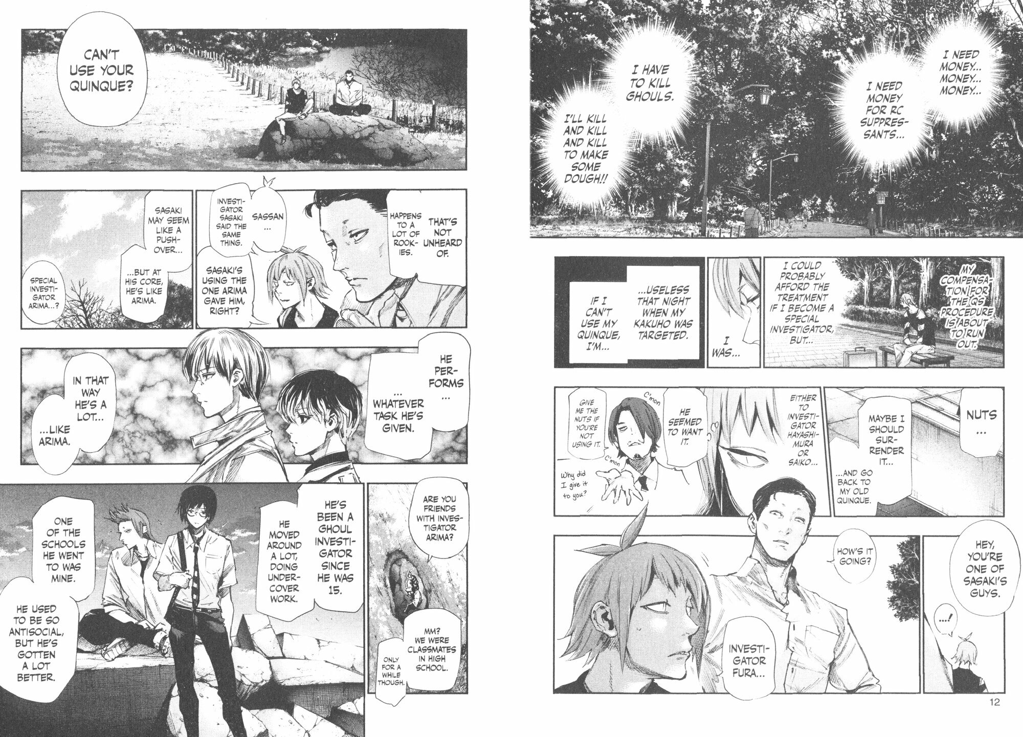 The Qs Squad once again proves its worth by going undercover to collect vital Ghoul information, allowing the CCG to finally move forward with a massive eradication campaign. But this strike pushes the Qs to their limits, bringing all their weaknesses to the forefront. And Haise is the hardest hit when his hidden past rushes forth to impact his future!
