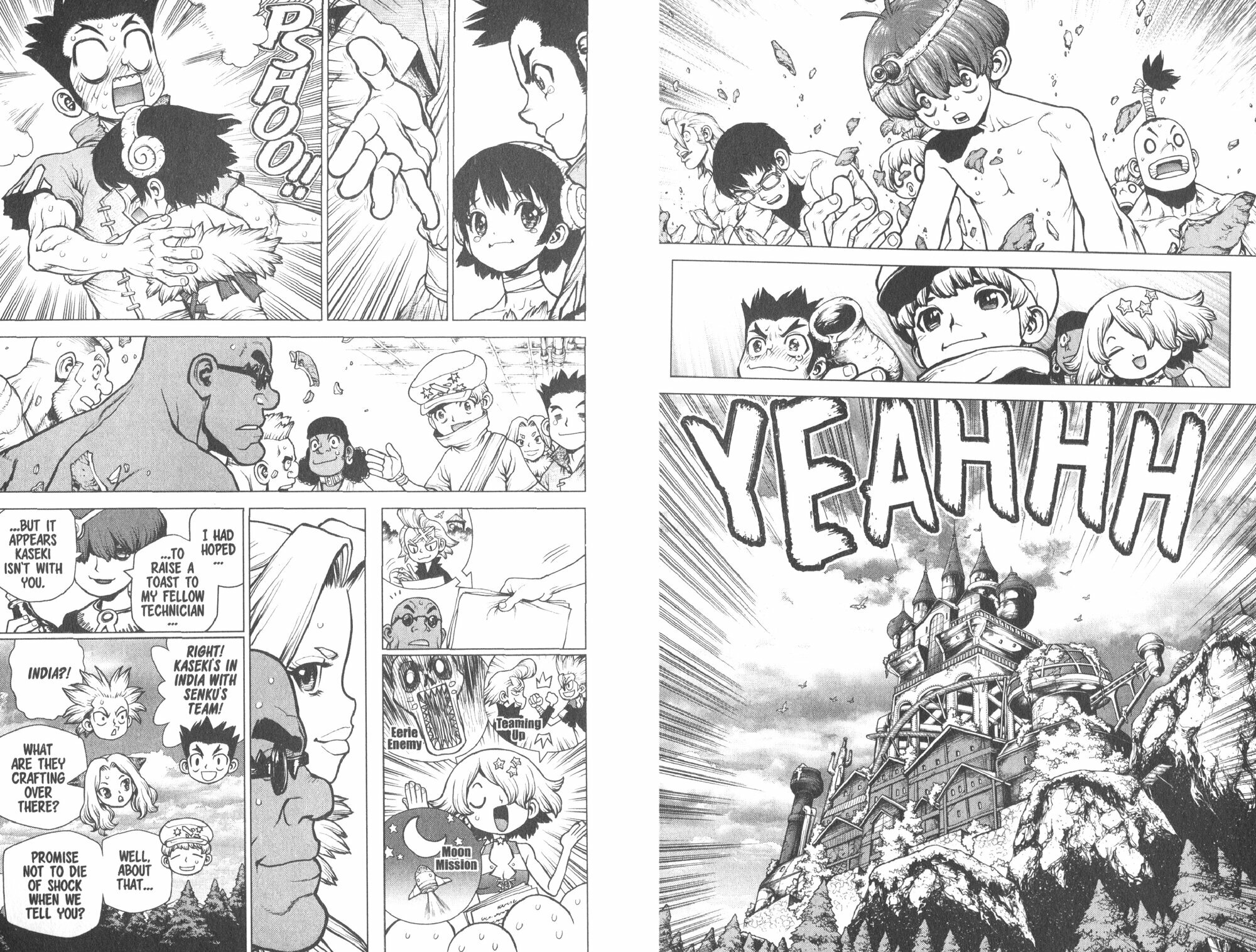 Senku and company are determined to reach the moon, but first they face their greatest obstacle yet—building a computer! They need the help of a genius programmer named Sai, who just happens to be Ryusui’s older brother. As progress on the rocket continues, Senku shocks the Kingdom of Science when he reveals a grim truth about their mission…