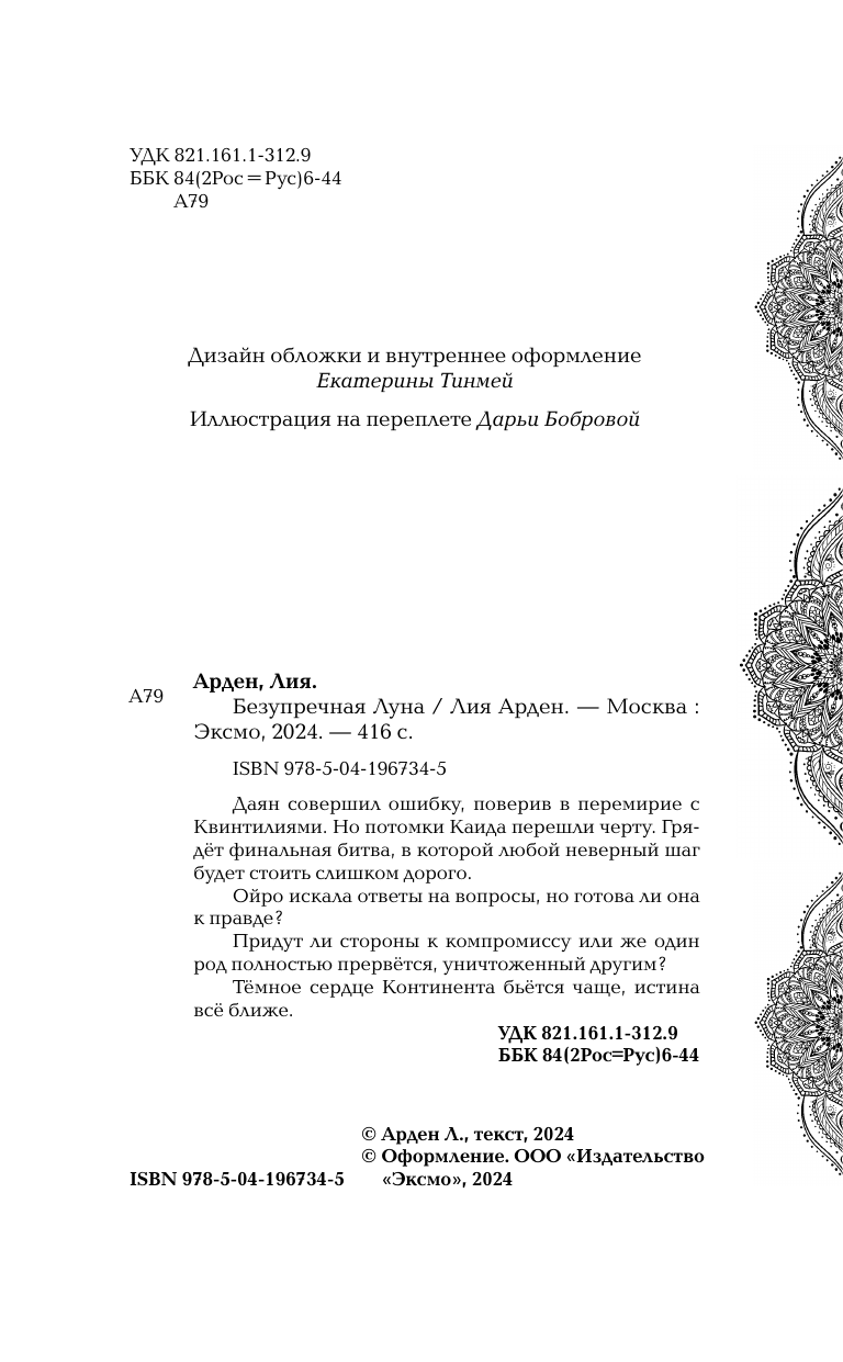 Книга: Безупречная Луна (Лия Арден); Эксмо, Черным-бело, Редакция 1, 2023