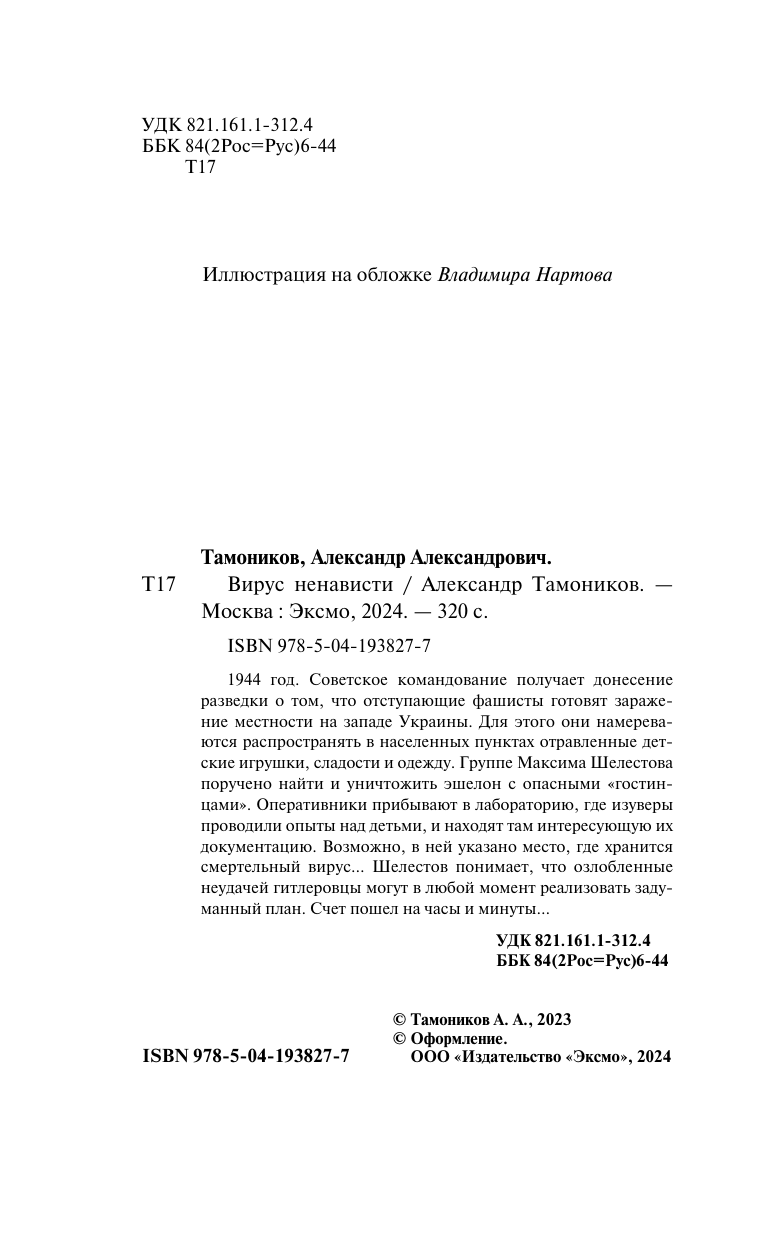 Книга: Вирус ненависти (Тамоников Александр Александрович); ООО "Издательство "Эксмо", 2024
