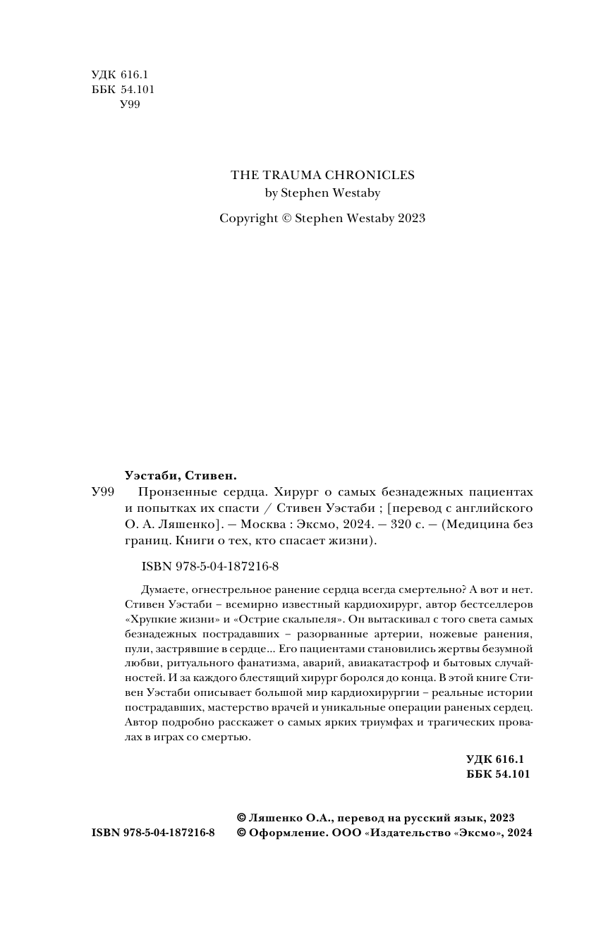 Пронзенные сердца. Хирург о самых безнадежных пациентах и попытках их спасти (Уэстаби Стивен); ООО "Издательство "Эксмо", 2024