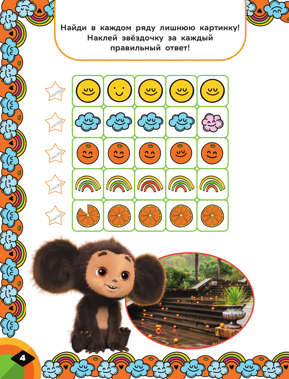 Любимый ушастый герой отправляется в захватывающее апельсиновое приключение! Попробуй пройти все задания с Чебурашкой — вас ждут увлекательные игры, затейливые головоломки, весёлые лабиринты и, конечно, много радости! Скорее открывай книгу и отправляйся в путешествие с ушастым другом!