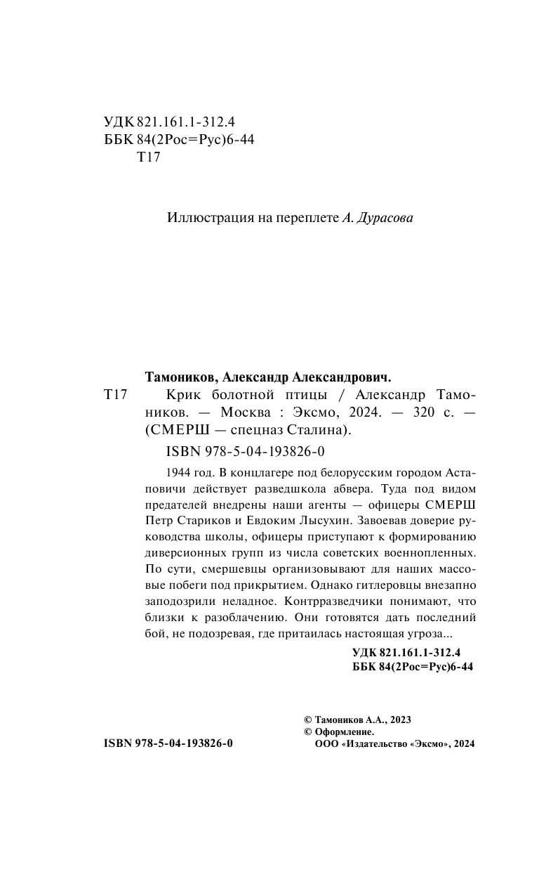 Книга: Крик болотной птицы (Тамоников Александр Александрович); ООО "Издательство "Эксмо", 2024