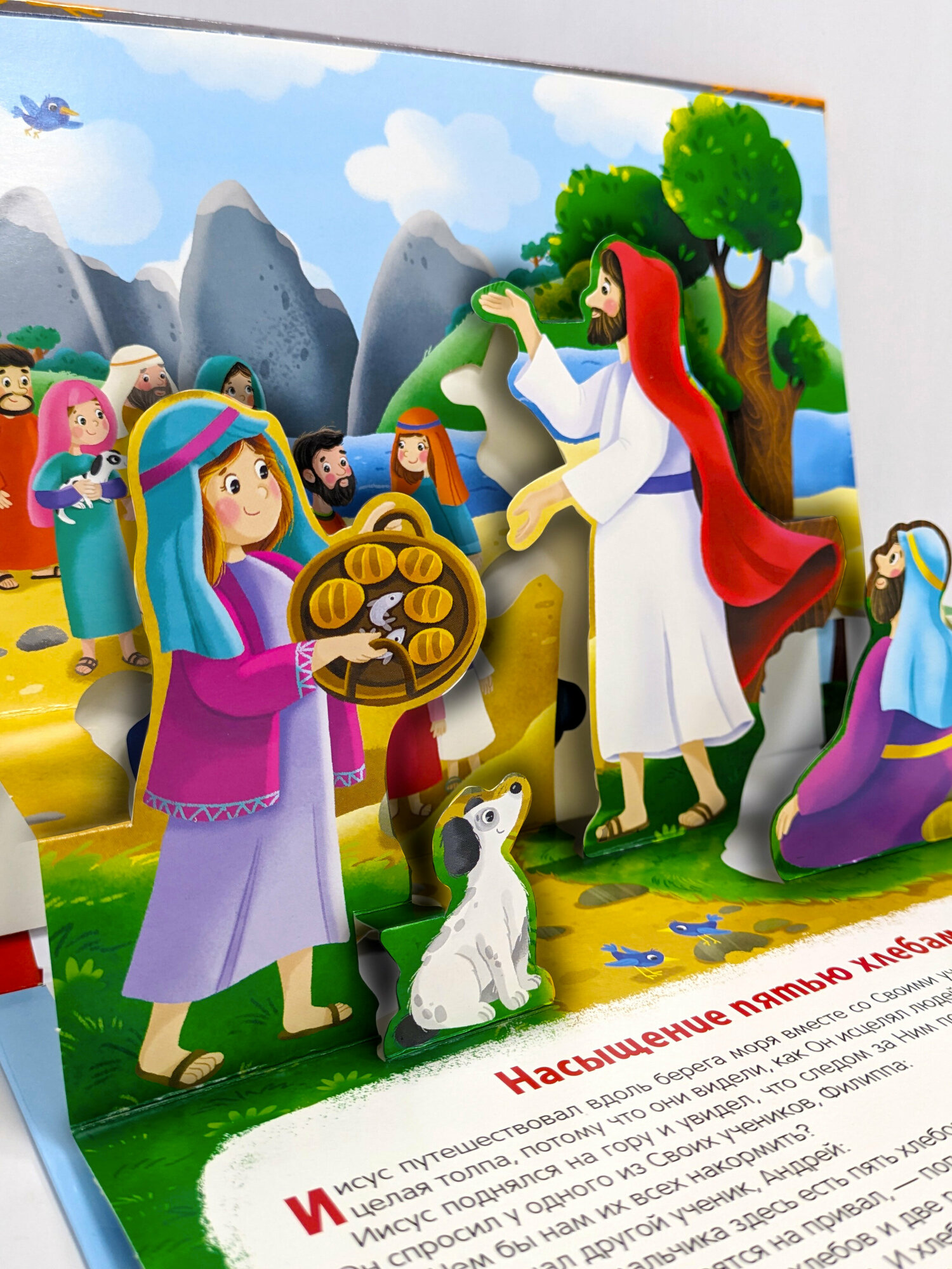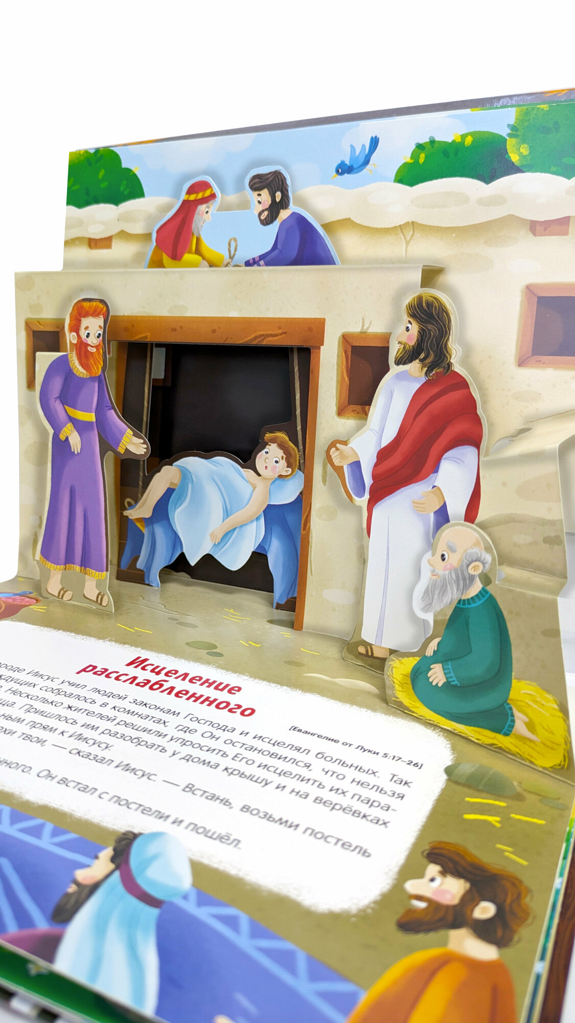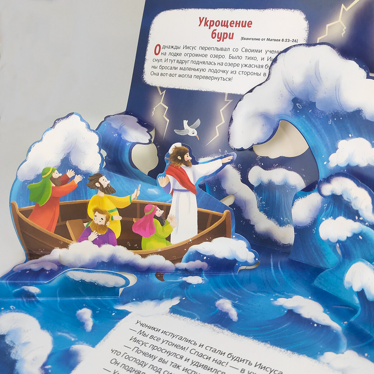 Книжка-панорамка «Чудеса Иисуса» из серии «Библейские истории» лёгким и интересным языком пересказывает один из сюжетов Священного Писания. В тексте сделаны аккуратные акценты на нравственных элементах истории. Пересказ составлен с опорой на традиционный русский синодальный перевод, а также «Детскую Библию», изданную Российским Библейским обществом.