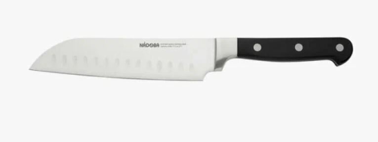 Кухонный нож Сантоку в классическом дизайне. Высококачественная нержавеющая сталь премиум-класса. Лезвие остаётся острым долгое время. Ручка из долговечного POM-пластика.