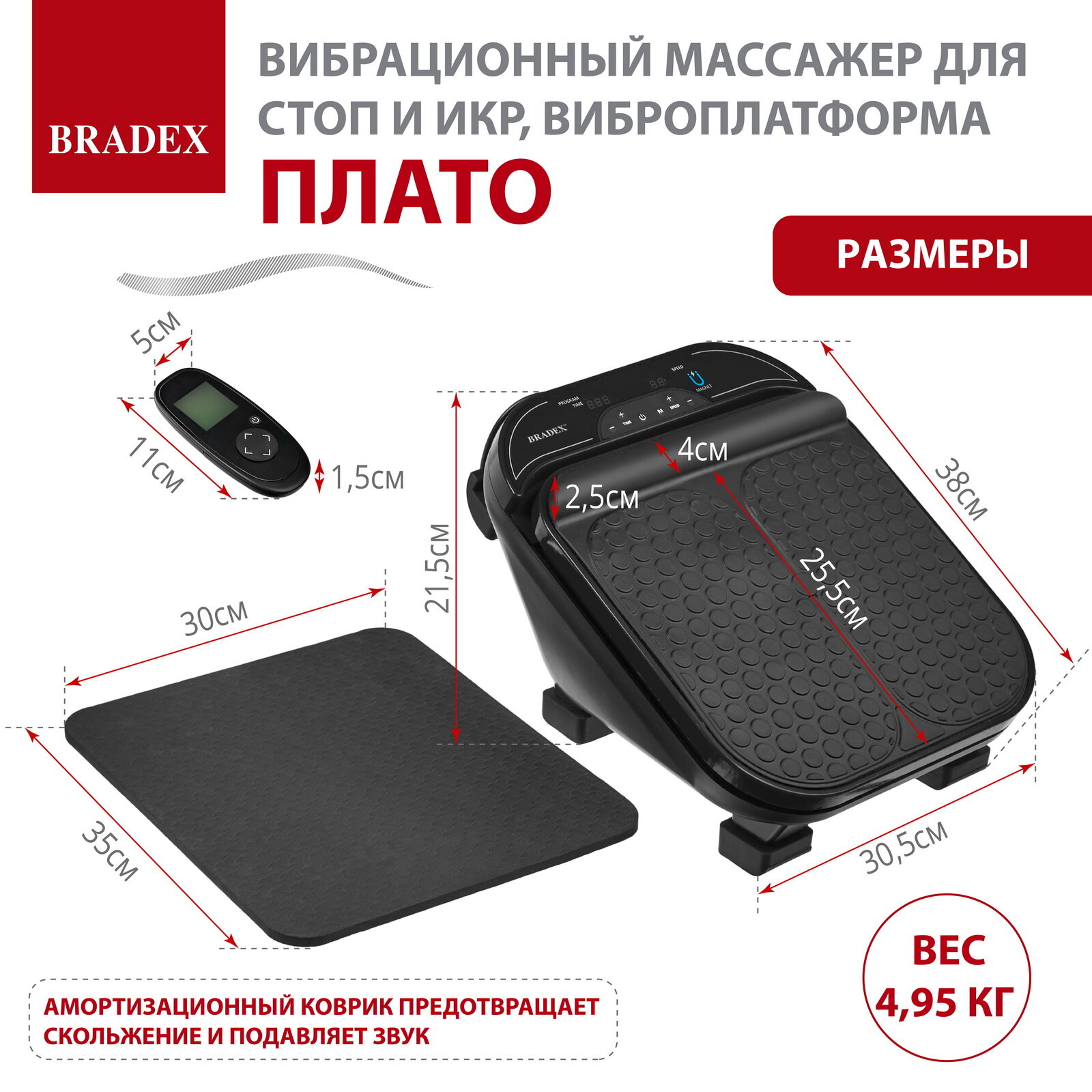 Мы даже не задумываемся о том, как много работы каждый день выполняют наши ноги. И, конечно, они нуждаются в качественном отдыхе. Теперь, чтобы расслабить уставшие мышцы не нужно идти к специалисту: почувствовать лёгкость в ногах можно в любое удобное время благодаря вибрационному массажеру для стоп и икр «плато».Одним из главных преимуществ вибрационного массажа является снятие напряжения, усталости и предотвращение болезненности мышц в зонах стоп и икр. Конструкция устройства разработана таким образом, что его можно устанавливать под разными углами, выбирая оптимальное положение для целевой зоны. Вибрации позволяют глубоко проработать выбранную поверхность и расслабить её. Всё, что потребуется от вас — включить устройство, выбрать одну из 10 предустановленных программ или самостоятельно настроить желаемые скорость и время и наслаждаться массажем в выбранной зоне. Вам даже не придется вставать с любимого кресла: установить желаемый режим можно при помощи пульта дистанционного управления.Массаж улучшает кровообращение, что, в свою очередь, помогает поддерживать здоровье мышц ваших ног. Если вы занимаетесь спортом, устройство отлично подойдёт для того, чтобы расслабиться после долгой пробежки или тяжелой тренировки. Использование вибрационного массажера ускорит процесс восстановления мышц и повысит вашу результативность на тренировках. А благодаря встроенному таймеру вам не придется следить за временем, массажер автоматически выключится, когда истечет заданный вами интервал. Стандартный сеанс массажа продолжается 15 минут. Ощущение боли или дискомфорта в ногах знакомо не только спортсменам. Массажер для ног — отличный инструмент для того, чтобы расслабить ноги после тяжёлого рабочего дня. Вибрационный массаж заставит вас почувствовать, как напряжения постепенно уходит из ваших уставших ног. Поскольку массаж вибрациями имеет расслабляющий и успокаивающий эффект, он облегчает засыпание и улучшает качество сна. После хорошего отдыха ночью вы ощутите прилив энергии и легкость в ногах.Вибрационный массажер станет для вас настоящим помощником, независимо от того, хотите вы восстановиться после тренировки, снять напряжение после долгого рабочего дня или просто отдохнуть и насладиться массажем. Массажёр рекомендован:- тем, кто регулярно чувствует усталость и напряжение в ногах;- тем, кто хочет снизить уровень стресса и улучшить качество сна;- спортсменам.Перед использованием массажера проконсультируйтесь с врачом.Преимущества использования вибрационного массажера для стоп и икр «плато»:- расслабляет уставшие мышцы;- улучшает кровообращение;- ускоряет процесс восстановления мышц после нагрузки;- помогает успокоиться;- облегчает засыпание.