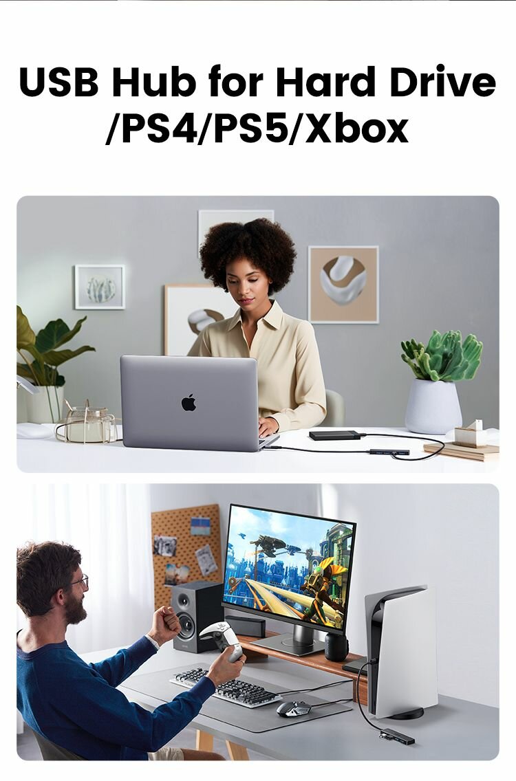 Широкая совместимость: в дополнение к ноутбукам и настольным компьютерам, этот разветвитель USB 3.0 также поддерживает другие устройства с интерфейсом USB A, такие как серия Xbox, PS5, автомобильные системы и т.д., которые могут удовлетворить различные потребности вашей повседневной жизни.