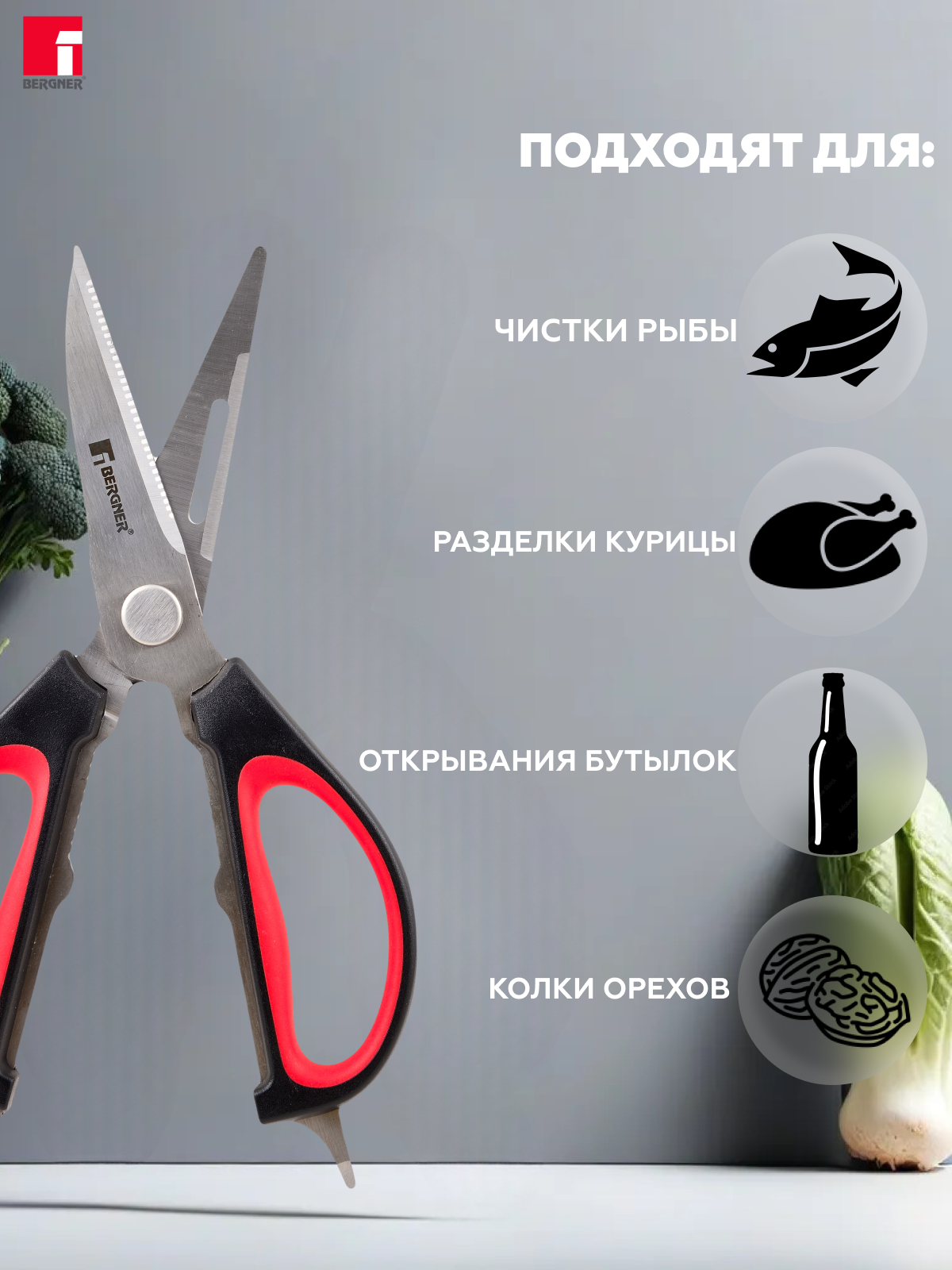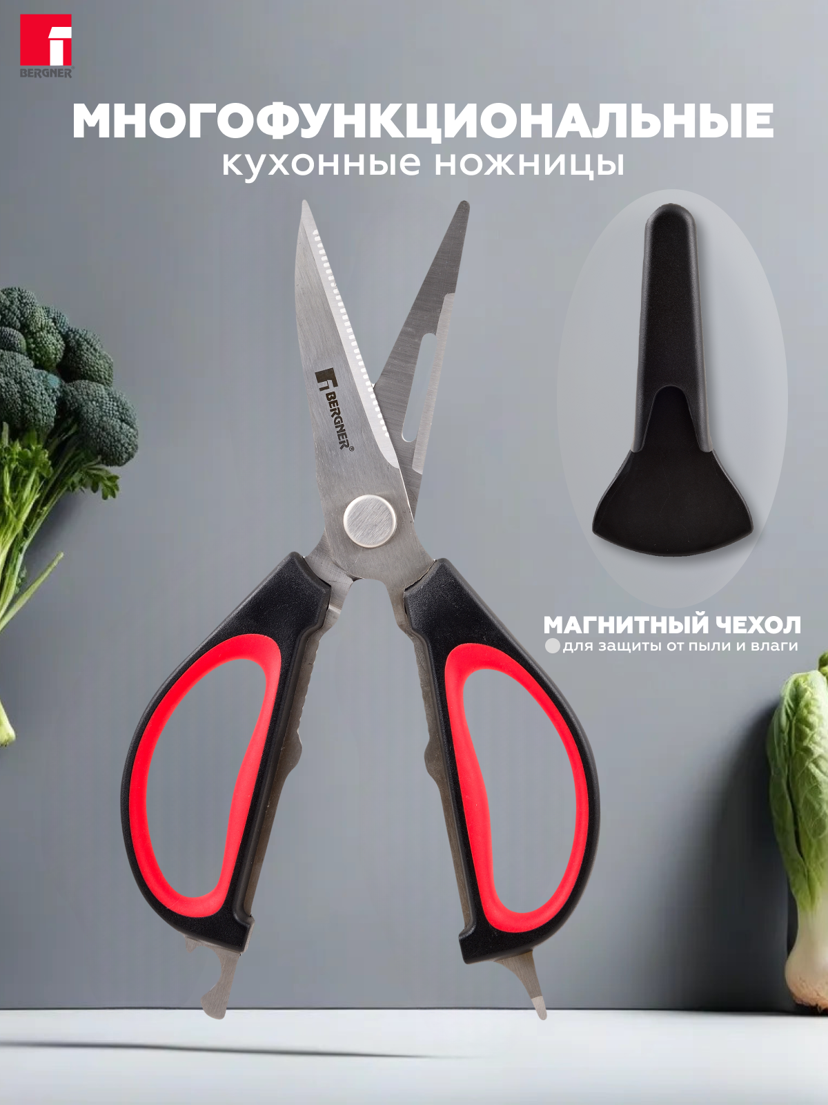 Ножницы кухонные Bergner в магнитном чехле 6в1