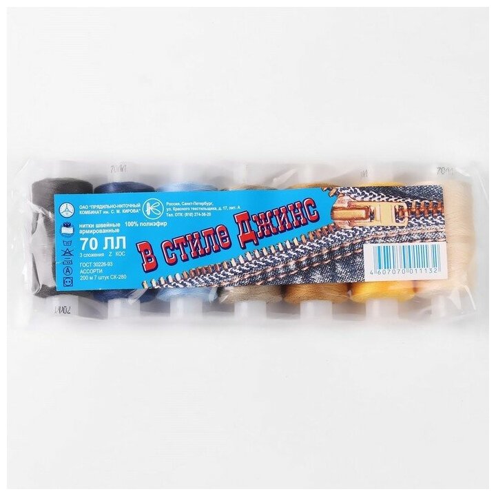 Нитки швейные 70ЛЛ 200м Набор 7шт "В стиле ДЖИНС" Армированные нитки для шитья не перетираются и не вытягиваются в процессе шитья, позволяя прострочить долговечный крепкий шов.