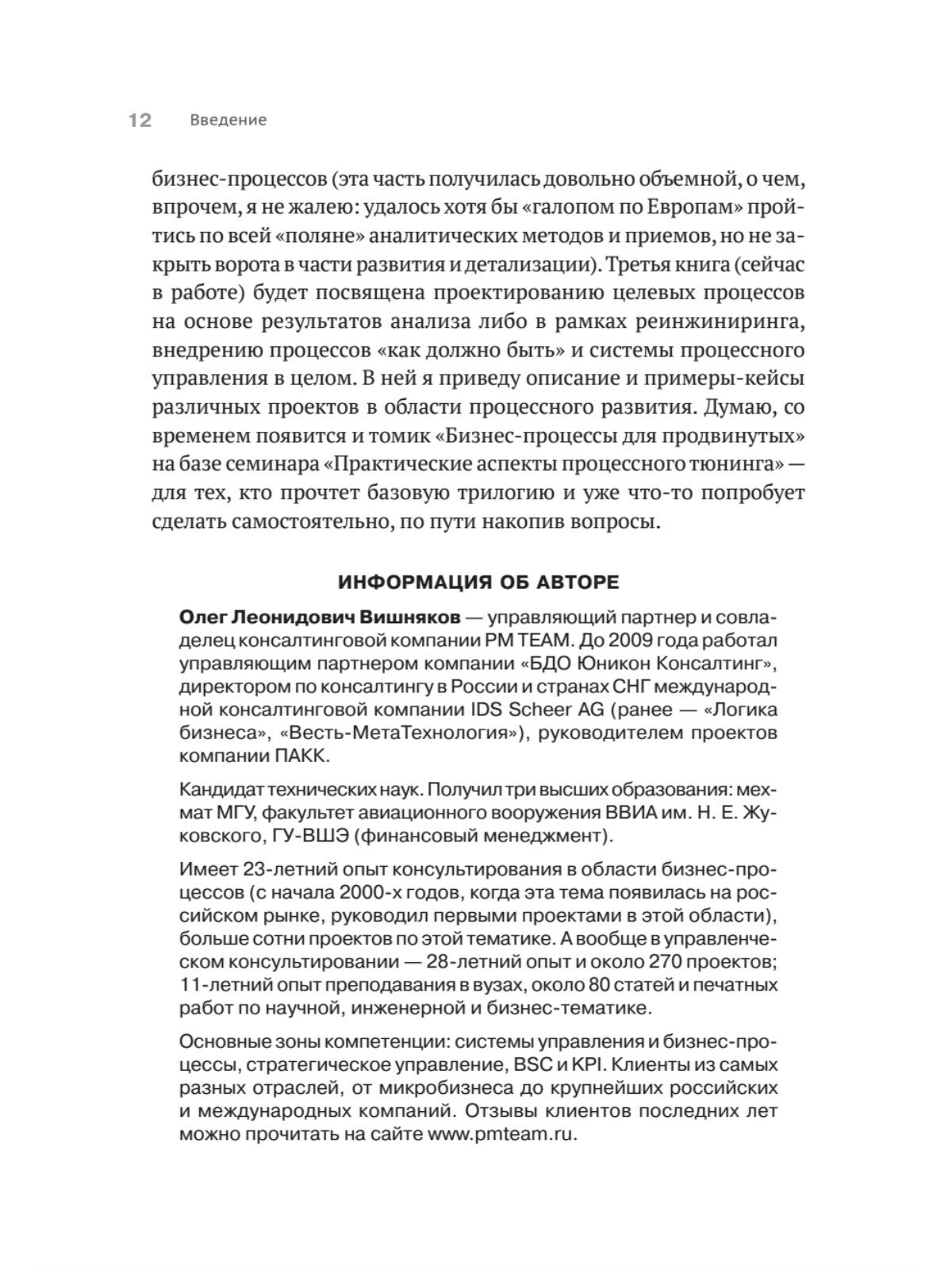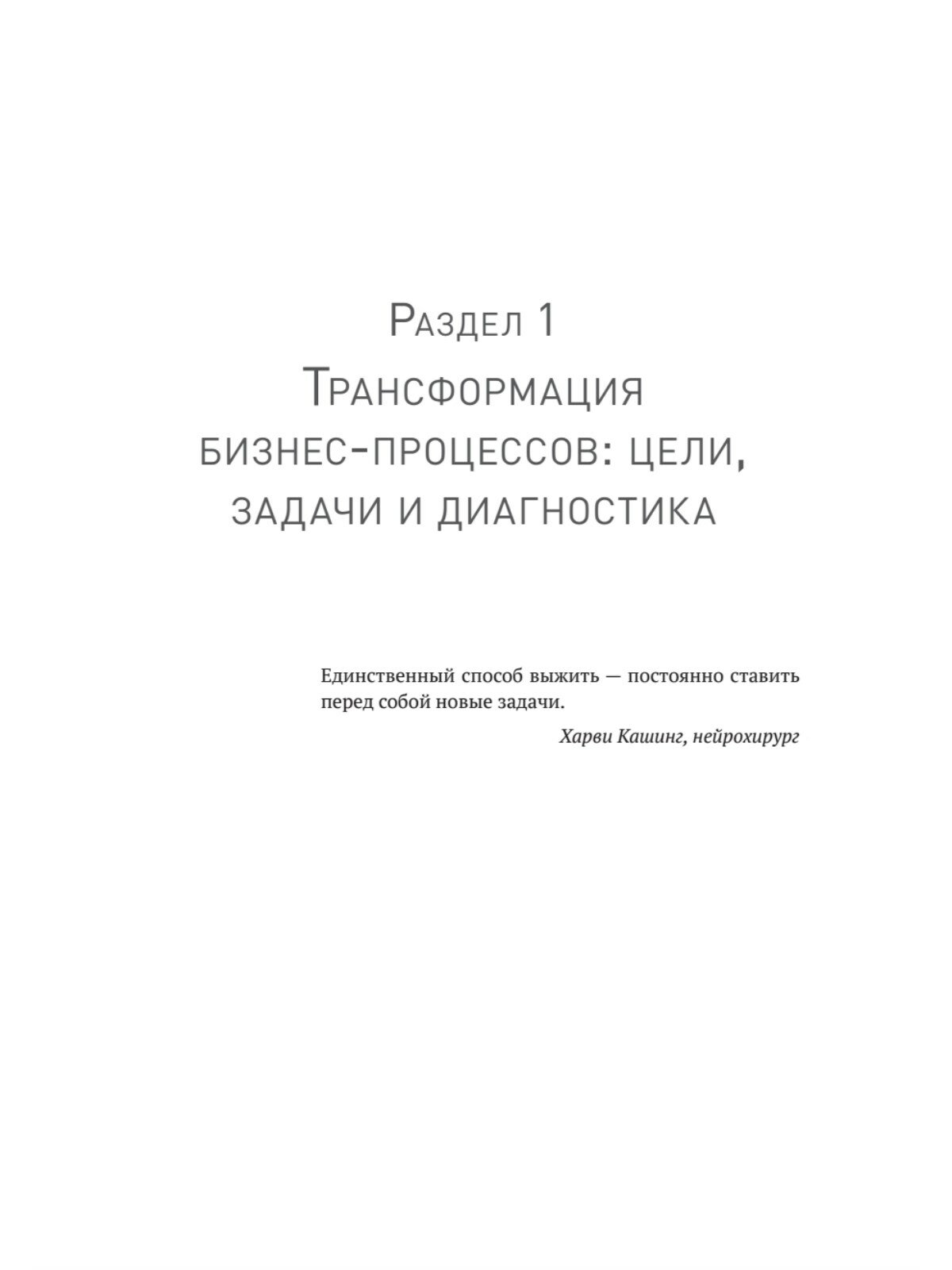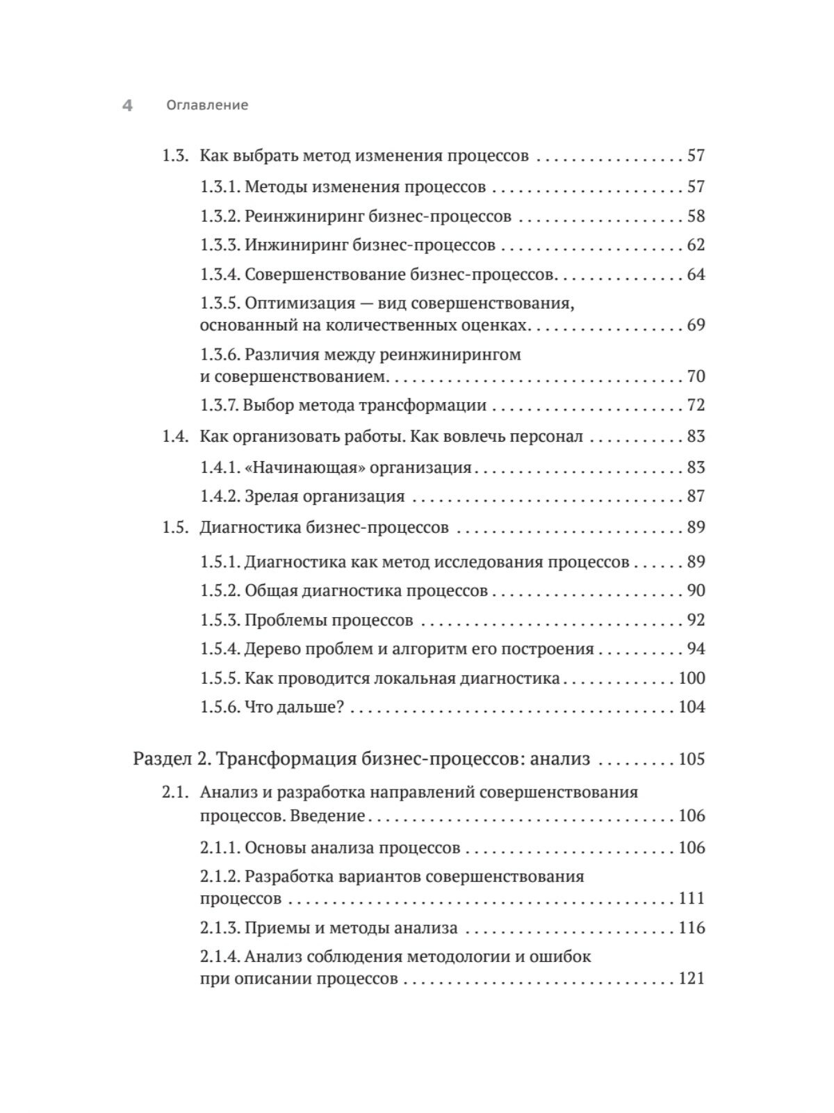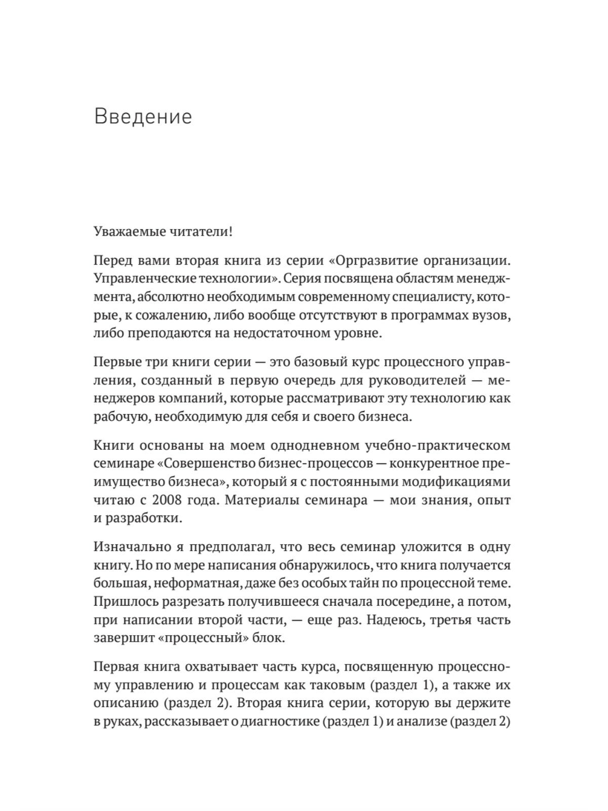 Это вторая книга серии «Оргразвитие организации. Управленческие технологии», посвященной областям менеджмента, абсолютно необходимым современному менеджеру. Книга является продолжением первой части «ПРЕИМУЩЕСТВО ПОВТОРЯЕМОСТИ. Практическое руководство по бизнес-процессам: процессы и их описание».Серия посвящена управлению бизнес-процессами в организациях: содержит теорию и практические кейсы, пошаговый план действий по внедрению, описывает функционирование процессной организации.Издание содержит теорию изменения (трансформации) процессов и описание вопросов управления ими, сопровождающуюся примерами реальных проектов и компаний, упражнениями для применения материала на практике, а также пошаговой инструкцией для реализации процессного подхода в организации. Основной фокус книги: методы проведения диагностики, анализа, совершенствования и реинжиниринга процессов, их внедрение и функционирование процессной организации. Обзор методов анализа процессов – наиболее полный из всего, что ранее было опубликовано по этому вопросу.Книга ориентирована на менеджеров различной функциональности (в т.ч. собственников и генеральных директоров), заинтересованных в совершенствовании своей работы, работы своих подчиненных и организации в целом. А также будет полезна управленческим консультантам.5 причин прочитать эту книгу:Написана действующим консультантом-экспертом в процессном управлении, занимающимся этой тематикой с момента ее появления на российском рынке.Издание содержит полезные фишки и примеры из проектов, а также наиболее полный обзор методов анализа процессов.Автор представляет точку зрения управления и менеджера.Материалы книги помогут наладить и оптимизировать работу подразделения или компании, обучить сотрудников.Книга дает возможность читателю поднять свою квалификацию, чтобы эффективно участвовать в соответствующих проектах в своей компании.