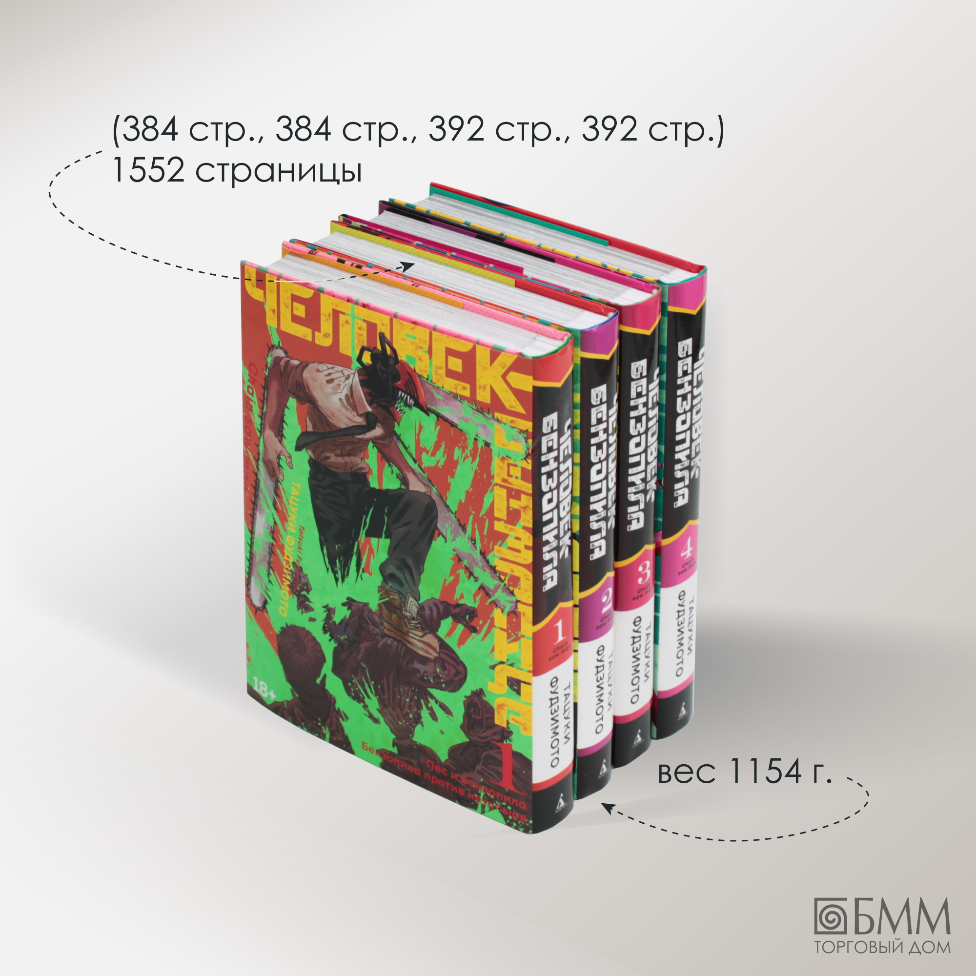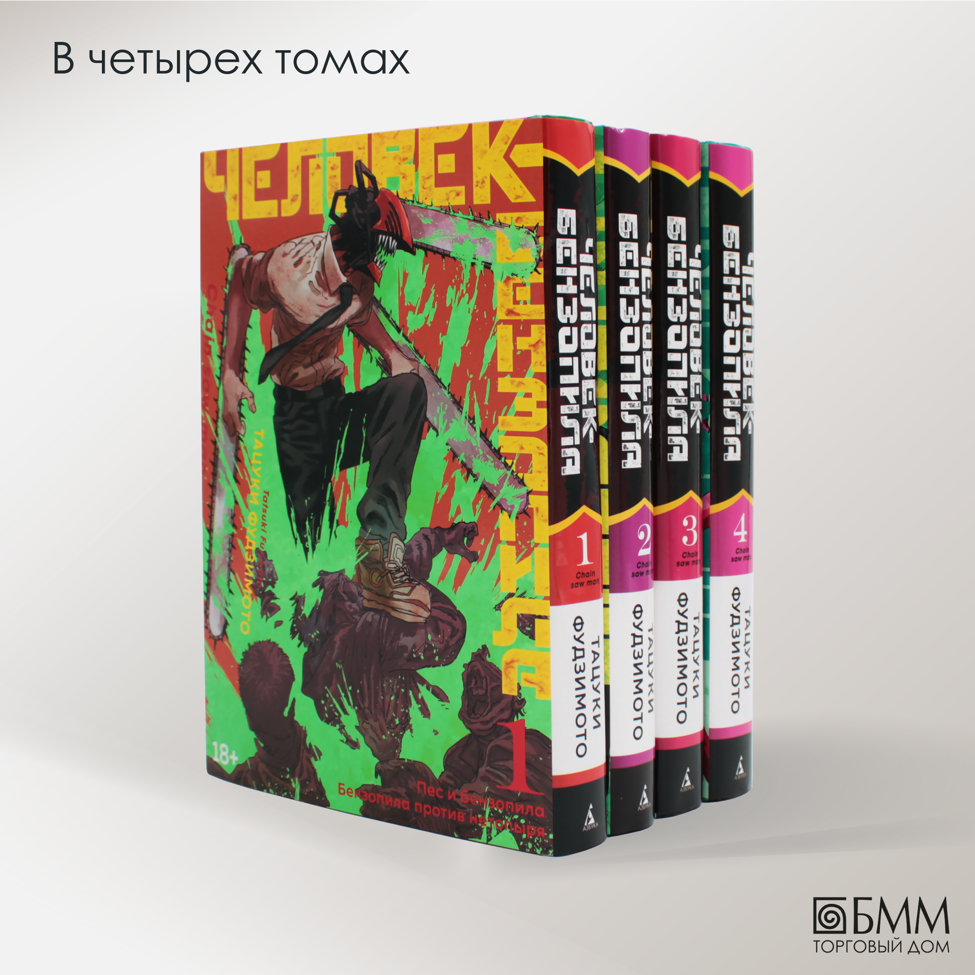 В комплект "Человек-бензопила" вошли следующие книги: "Человек-бензопила 1. Книги 1-2: Пес и бензопила; Бензопила против нетопыря", "Человек-бензопила 2. Книги 3-4: Убить Дэнди; Мощь огнестрельного оружия"; "Человек-бензопила 3. Книги 5-6: Несовершеннолетний; Бум-бум-бум"; "Человек-бензопила 4. Книги 7-8: Во сне. Настоящая жесть".