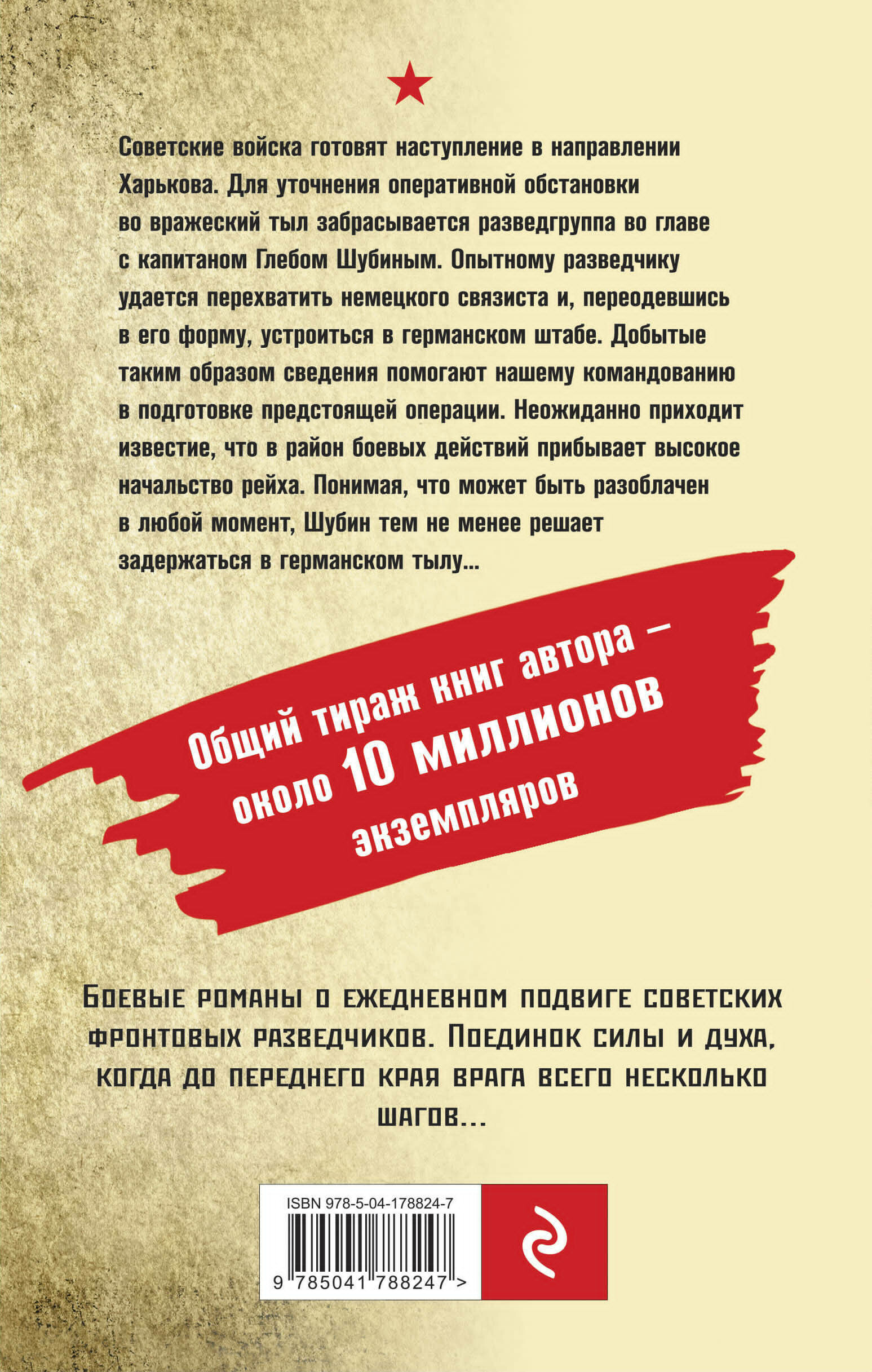 Советские войска готовят наступление в направлении Харькова. Для уточнения оперативной обстановки во вражеский тыл забрасывается разведгруппа во главе с капитаном Глебом Шубиным. Опытному разведчику удается перехватить немецкого связиста и, переодевшись в его форму, устроиться в германском штабе. Добытые таким образом сведения помогают нашему командованию в подготовке предстоящей операции. Неожиданно приходит известие, что в район боевых действий прибывает высокое начальство рейха. Понимая, что может быть разоблачен в любой момент, Шубин тем не менее решает задержаться в германском тылу…