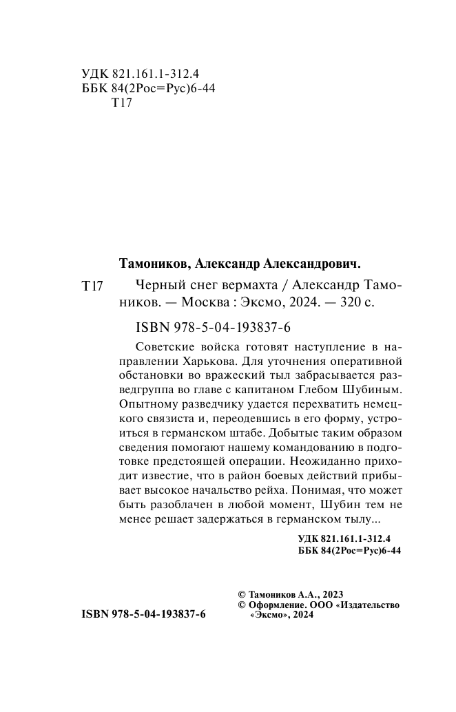 Книга: Черный снег вермахта (Тамоников Александр Александрович); ООО "Издательство "Эксмо", 2024