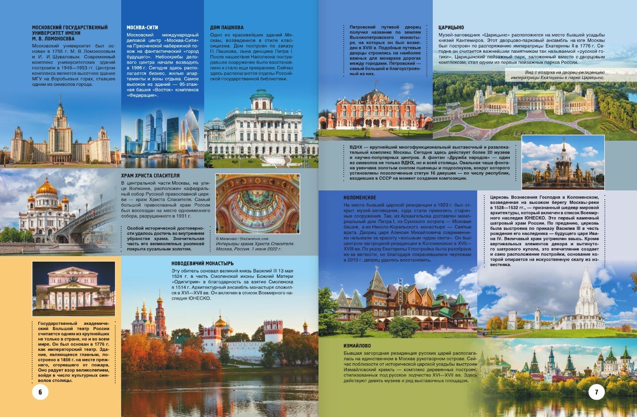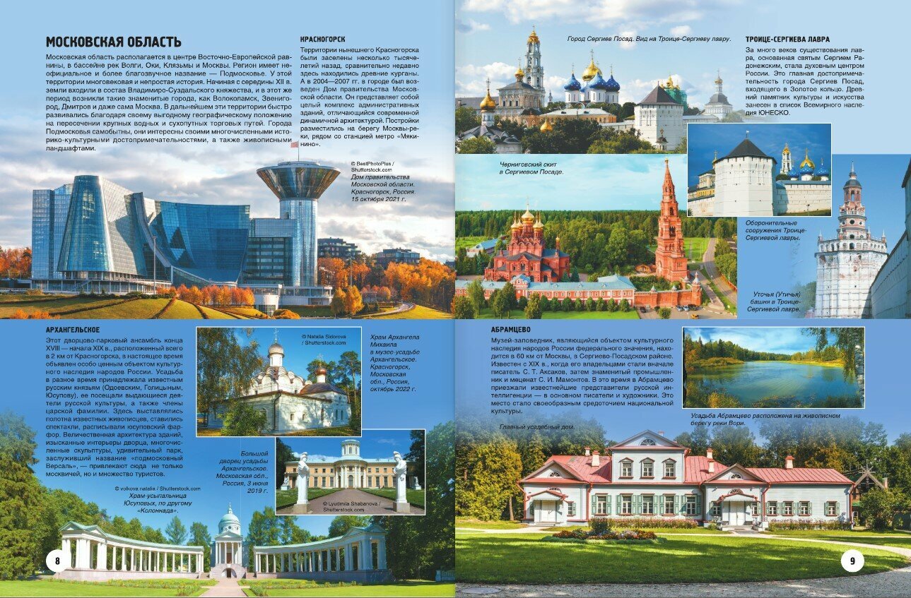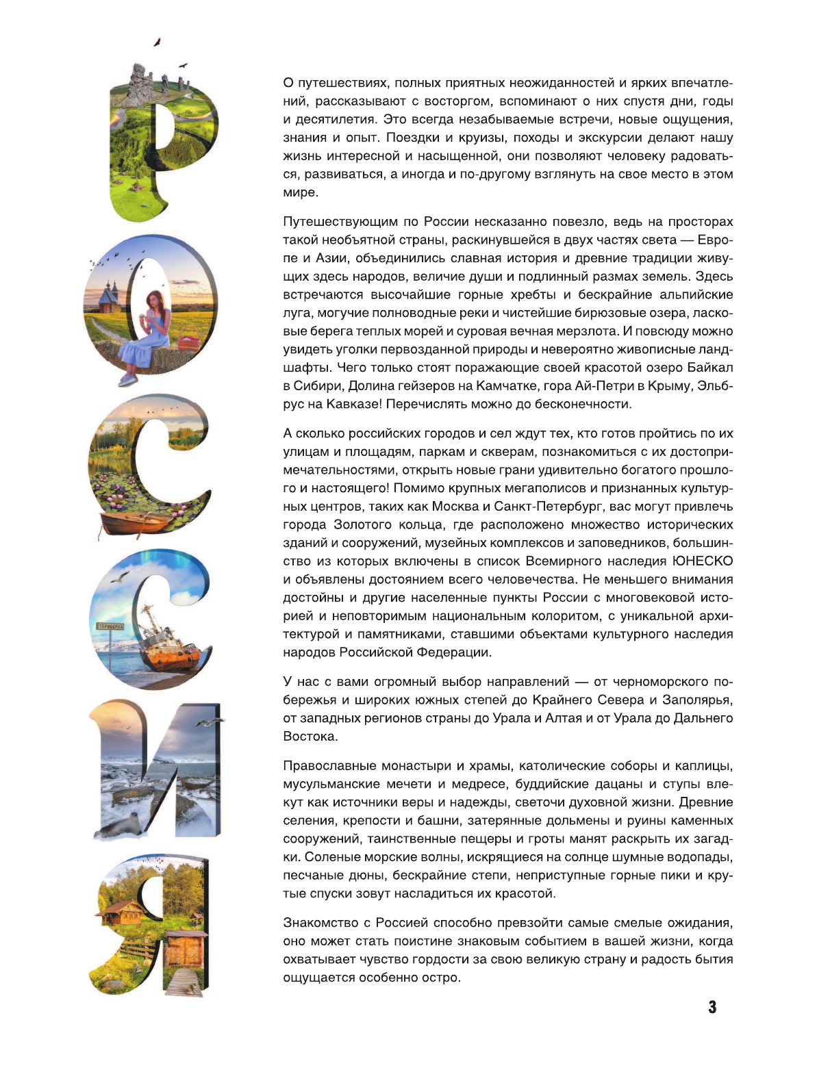 Эта книга посвящена России — стране великой и загадочной, с тысячелетней историей и поистине выдающейся культурой. В издании представлено все самое значимое и интересное из того колоссального обилия исторических достопримечательностей, которое можно встретить от западных регионов до Дальнего Востока и от Крайнего Севера до южных границ. Перелистывая страницы этой книги с уникальным подбором зрелищных фотографий, число которых превышает 1000, и знакомясь с важной и актуальной информацией, вы сможете в полной мере оценить "золотой запас" историко-культурного наследия этого многонационального государства: города-музеи с экспонатами в виде памятников архитектуры и старинных зданий, духовные святыни, годами и столетиями намоленные верующими разных конфессий, места боевой славы и народной памяти, а также захватывающие дух урбанистические пейзажи на фоне фантастически красивых природных ландшафтов. И не важно, ищете ли вы культурный опыт в экскурсиях по древним кремлям и легендарным цитаделям, романтическим дворянским усадьбам и роскошным дворцово-парковым комплексам, стремитесь ли обрести духовное просветление и прийти к истинной вере в Бога в паломничестве по крупнейшим монастырям и храмам, планируете ли поездки в еще неизведанные регионы, — вы получите шанс заново открыть для себя нашу страну, прочтя эту книгу. Бывает так, что ошеломляющие, в положительном смысле этого слова, картины неизвестной России предстают перед нами совершенно случайно. И очередное знакомство с каким-то из выбранных мест может оказаться совершенно особенным, стать источником переосмысления жизни в этой стране и надежды на ее счастливое будущее.