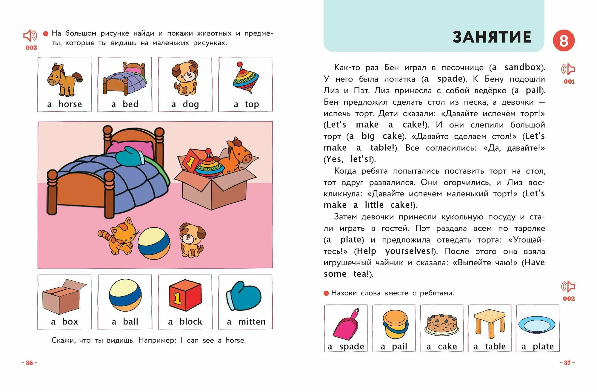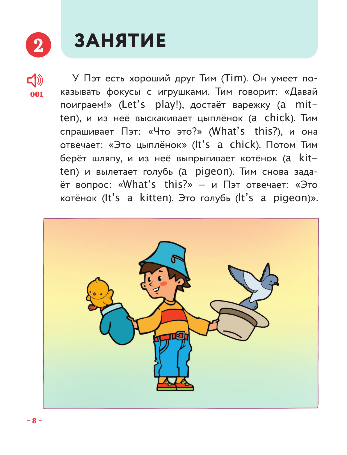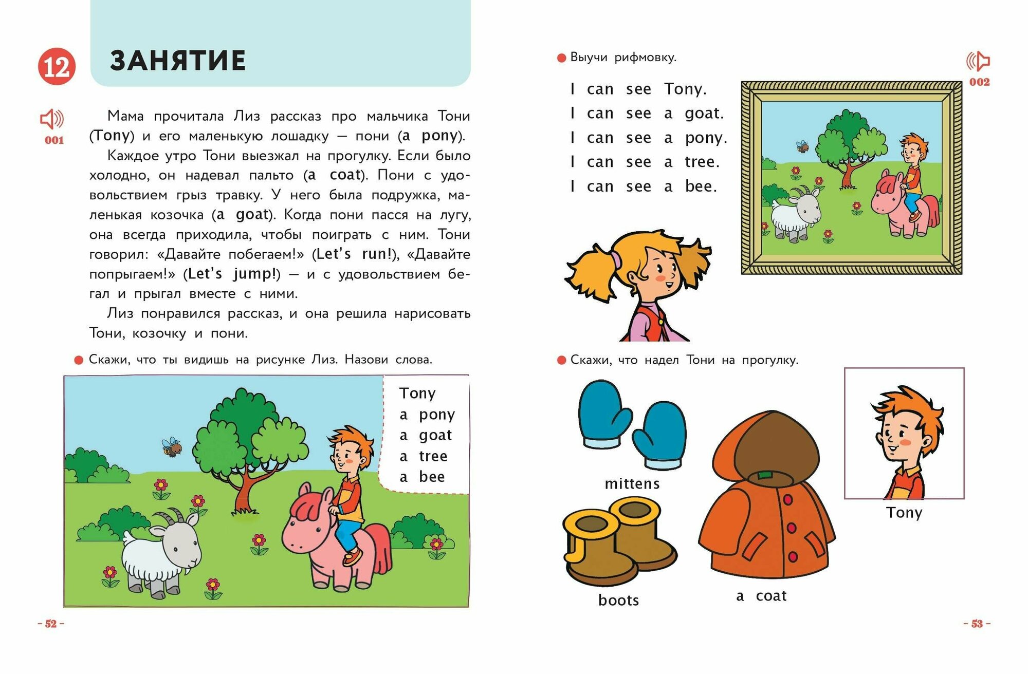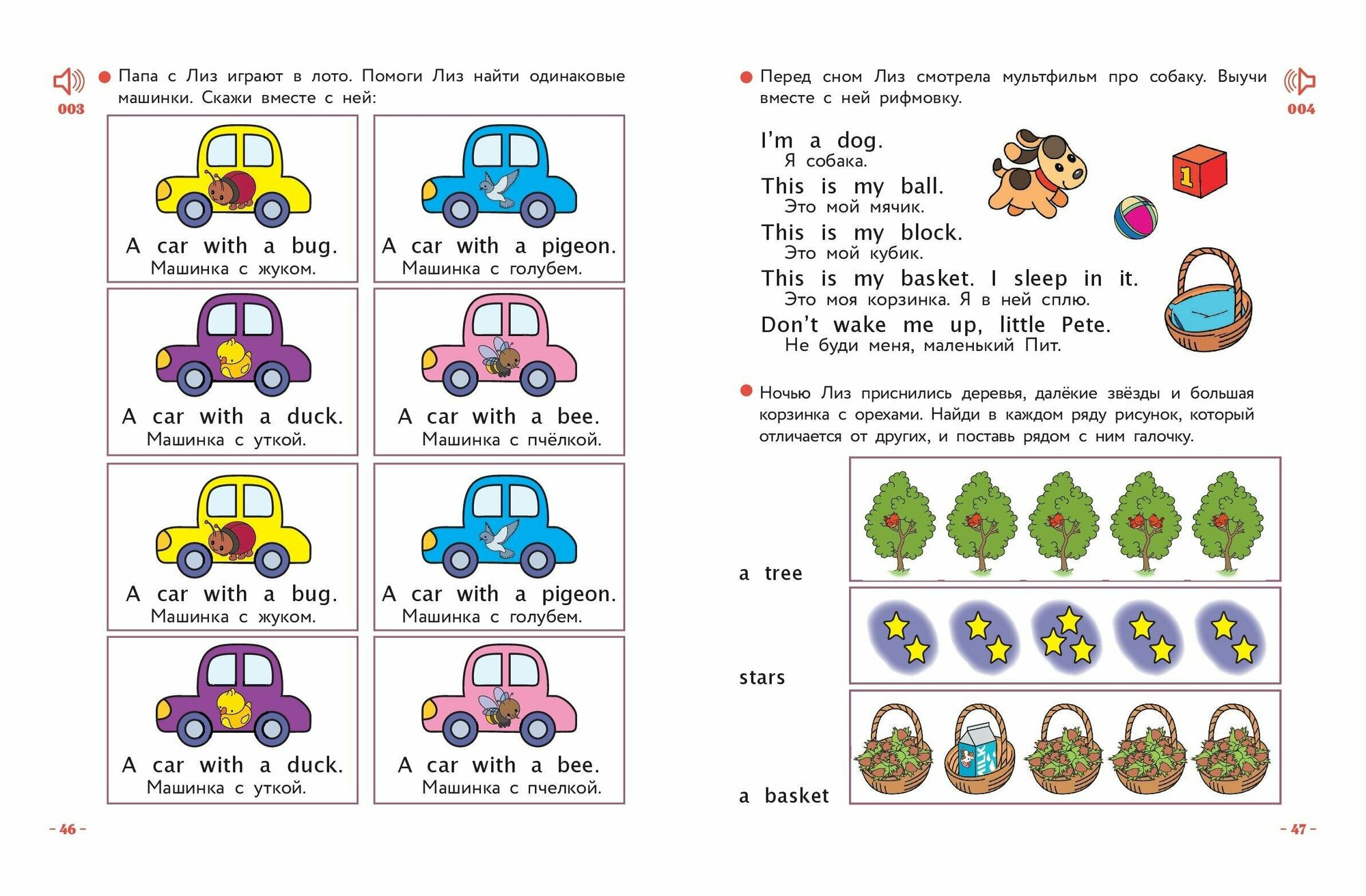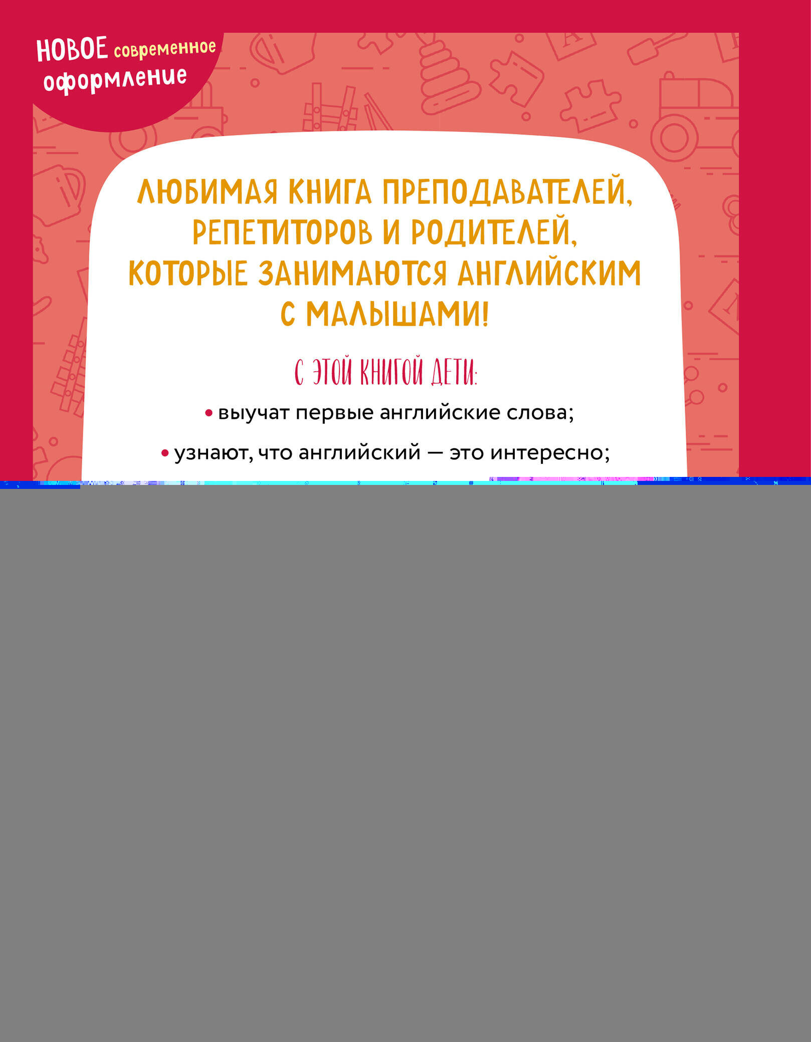 У малышей свой способ освоения языка. Иностранный они изучают так же, как родной: повторяя за взрослыми и называя предметы или рисунки. Не упустите возможность познакомить вашего малыша с английским еще до того, как он обнаружит языковой барьер! Рассматривая вместе с вами картинки, выполняя простые задания, повторяя вслед за вами и диктором слова и рифмовки, напевая веселые песенки, ребенок освоит множество английских слов! Выучить их помогут коротенькие рассказы на русском языке — ведь в сюжетной истории все запоминается лучше! Аудиозапись поможет поставить отличное произношение и научит легко воспринимать англоязычную речь на слух.