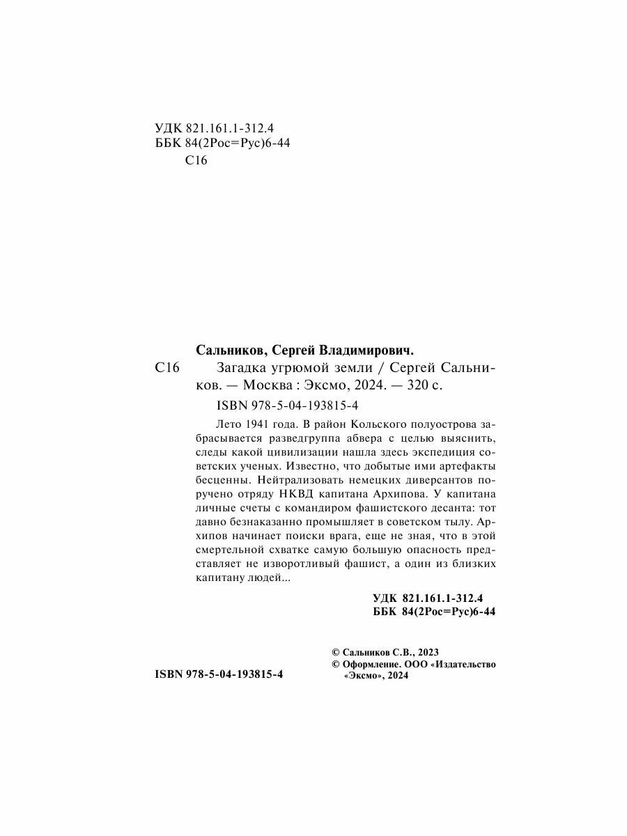 Книга: Загадка угрюмой земли (Сальников Сергей Владимирович); ООО "Издательство "Эксмо", 2024