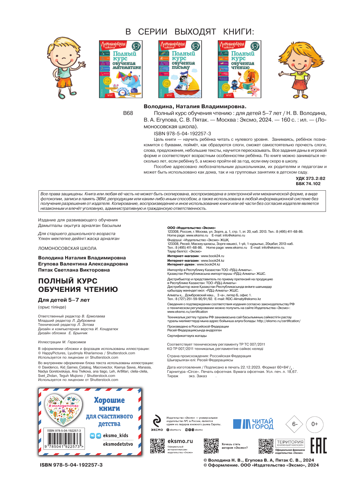 Полный курс обучения чтению: для детей 5-7 лет (Егупова Валентина Александровна, Пятак Светлана Викторовна, Володина Наталия Владимировна); ООО "Издательство "Эксмо", 2024