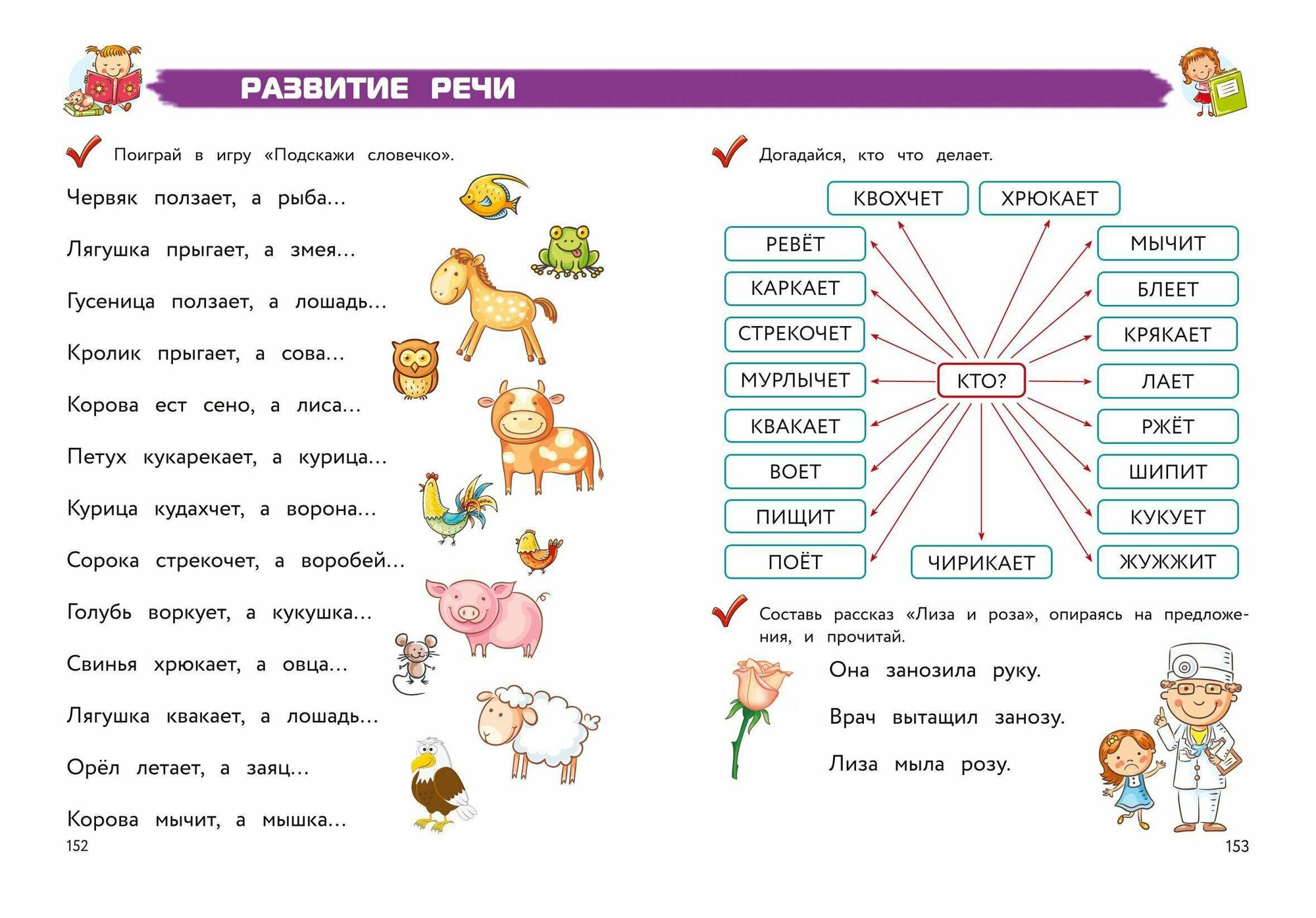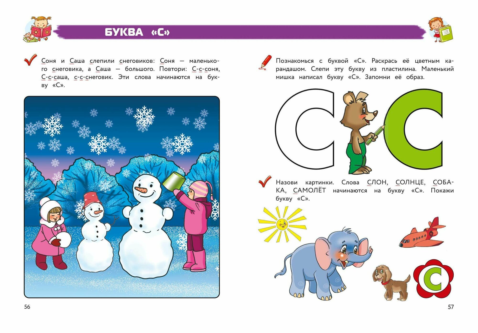 По книге можно заниматься несколько лет, если ребенку 5 лет, а можно пройти ее за год, если ему скоро в школу. Во время занятий малыш не будет отвлекаться, так как все задания даются в игровой форме, а яркие цветные картинки сразу привлекут внимание любознательного непоседы.