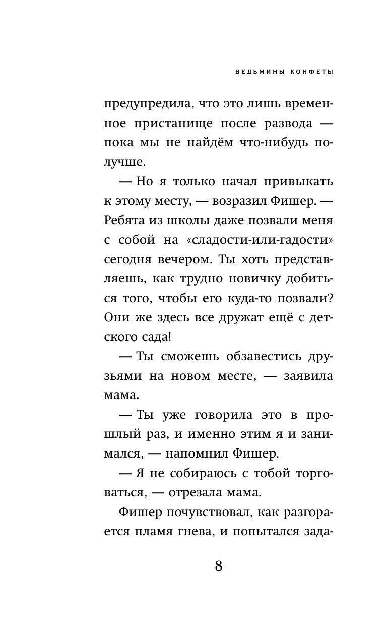 Фишер любил — нет, просто обожал! — Хэллоуин. И, конечно, в праздничный вечер отправился с друзьями на охоту за сладостями. Их команда во что бы то ни стало решила выиграть соревнование по сбору конфет. Так ребята оказались перед крыльцом старого заброшенного дома, в котором когда-то жила ведьма. И увидели чёрный котелок, полный шоколадных батончиков… Эти чудесные конфеты таяли во рту! Вот только, съев их, друзья превратились в чудовищ. Монстров, которых изображали их карнавальные костюмы! И теперь по городу рыщут настоящая болотная тварь, вампир и вор-невидимка! Можно ли вернуть им человеческий облик? И что для этого нужно сделать? Чтобы помочь друзьям, у Фишера есть время до восхода солнца. Иначе ребята навсегда останутся чудовищами!