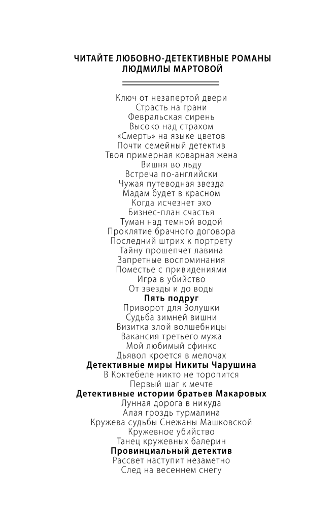 | Серия | Детективные романы Людмилы Мартовой |