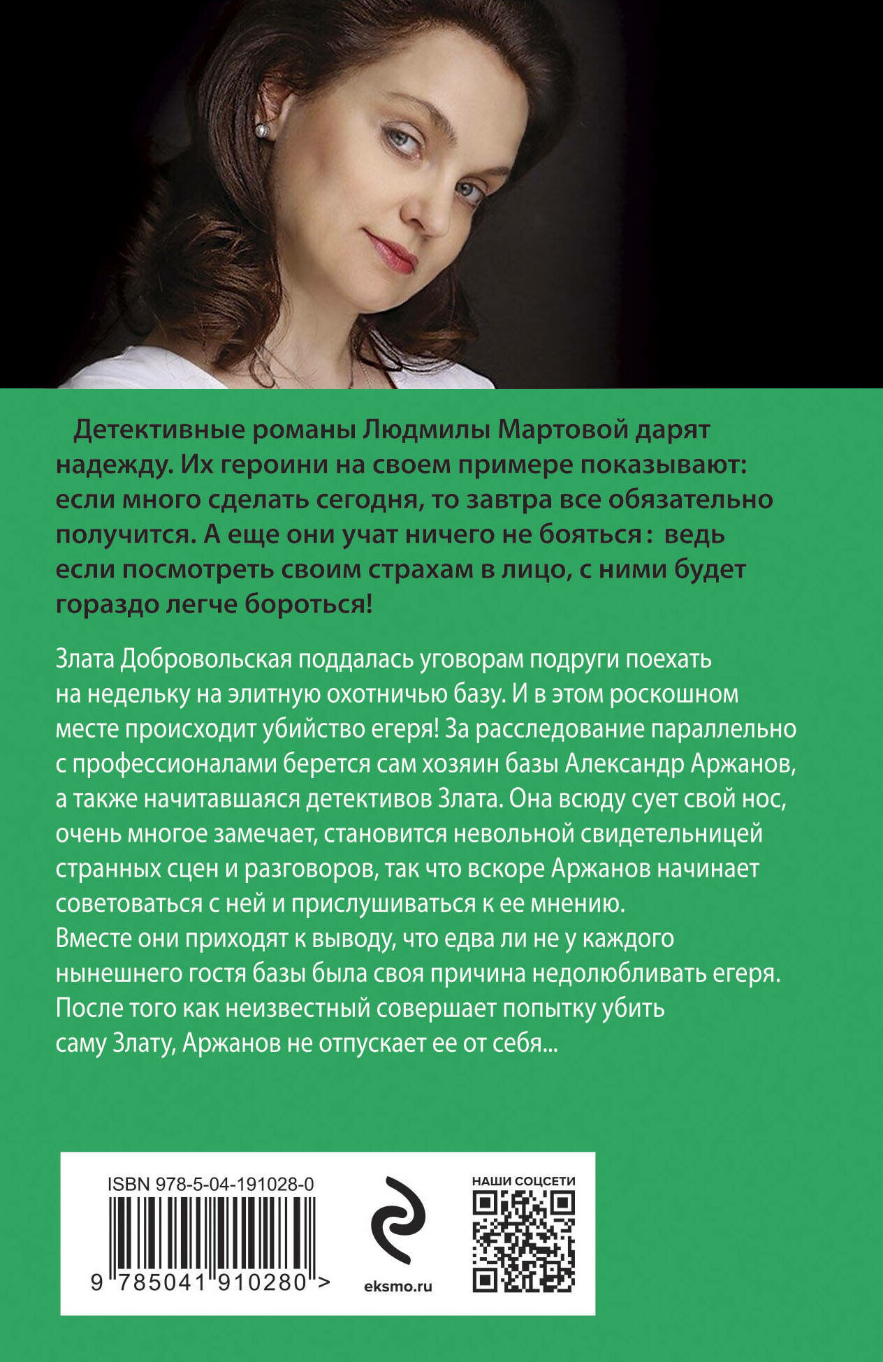 Злата Добровольская поддалась уговорам подруги поехать на недельку на элитную охотничью базу. И в этом роскошном месте происходит убийство егеря! За расследование параллельно с профессионалами берется сам хозяин базы Александр Аржанов, а также начитавшаяся детективов Злата. Она всюду сует свой нос, очень многое замечает, становится невольной свидетельницей странных сцен и разговоров, так что вскоре Аржанов начинает советоваться с ней и прислушиваться к ее мнению. Вместе они приходят к выводу, что едва ли не у каждого нынешнего гостя базы была своя причина недолюбливать егеря. После того как неизвестный совершает попытку убить саму Злату, Аржанов не отпускает ее от себя