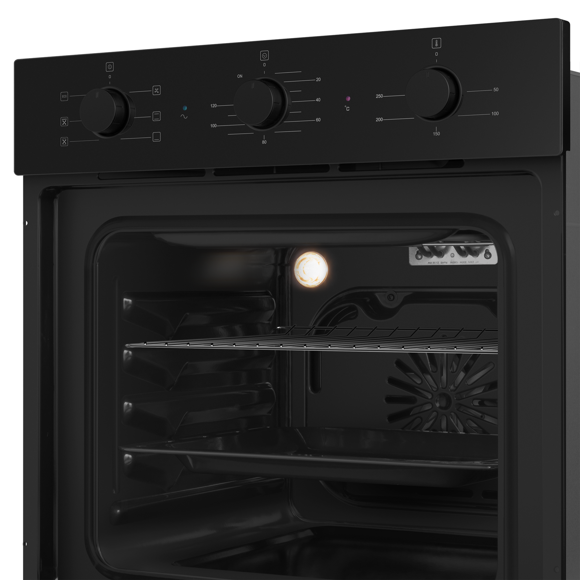 Серия духовых шкафов MAUNFELD AEOF6060 - это сочетание высокого качества сборки, эксклюзивного дизайна и расширенного функционала.Управление происходит при помощи утапливаемых ручек PUSH PULL, увеличенного размера для комфортного использования, которые легко убираются внутрь корпуса после использования, что делает уход за лицевой панелью шкафа максимально удобным. Дверца духового шкафа оснащена тройным стеклом - это гарантия медленного нагревания внешнего стекла, что создает холодный фронт и делает процесс приготовления безопасным исключая возможность ожога при касании. Духовой шкаф оснащен разнообразным набором функций для приготовления:1. Подсветка. Яркое внутреннее освещение делает процесс приготовления блюд ещё приятнее. Вы всегда сможете видеть состояние готовящихся блюд, контролировать их готовность, даже не открывая шкафа.2. Размораживание. В данном режиме духовой шкаф осуществляет усиленную циркуляцию воздуха во внутренней камере, что способствует размораживанию продуктов.3. Нижний нагрев. Нагрев осуществляется только в нижней частикамеры духового шкафа. Для разогрева или приготовления пищив медленном режиме.4. Верхний и нижний нагрев. Нагрев осуществляется в нижнейи верхней части духового шкафа. Стандартный режим дляприготовления пищи.5. Конвекция с верхним и нижним нагревом. К работе нижнегои верхнего нагревательного элемента добавляется работавентилятора, что способствует улучшенной циркуляции горячеговоздуха в камере и равномерному прогреванию пищи.6. Гриль. Нагрев осуществляется за счёт внутренней части верхнегонагревательного элемента, направляющей жар сверху вниз.7. Эко. Режим приготовления, обеспечивающий наиболее эффективныйрасход энергии.Преимущества:Утапливаемые ручки PUSH PULLОбъем камеры - 60 л.Тройное стекло дверцыДуховой шкаф имеет класс энергопотребления А, что говорит, о низком потреблении электроэнергии.
