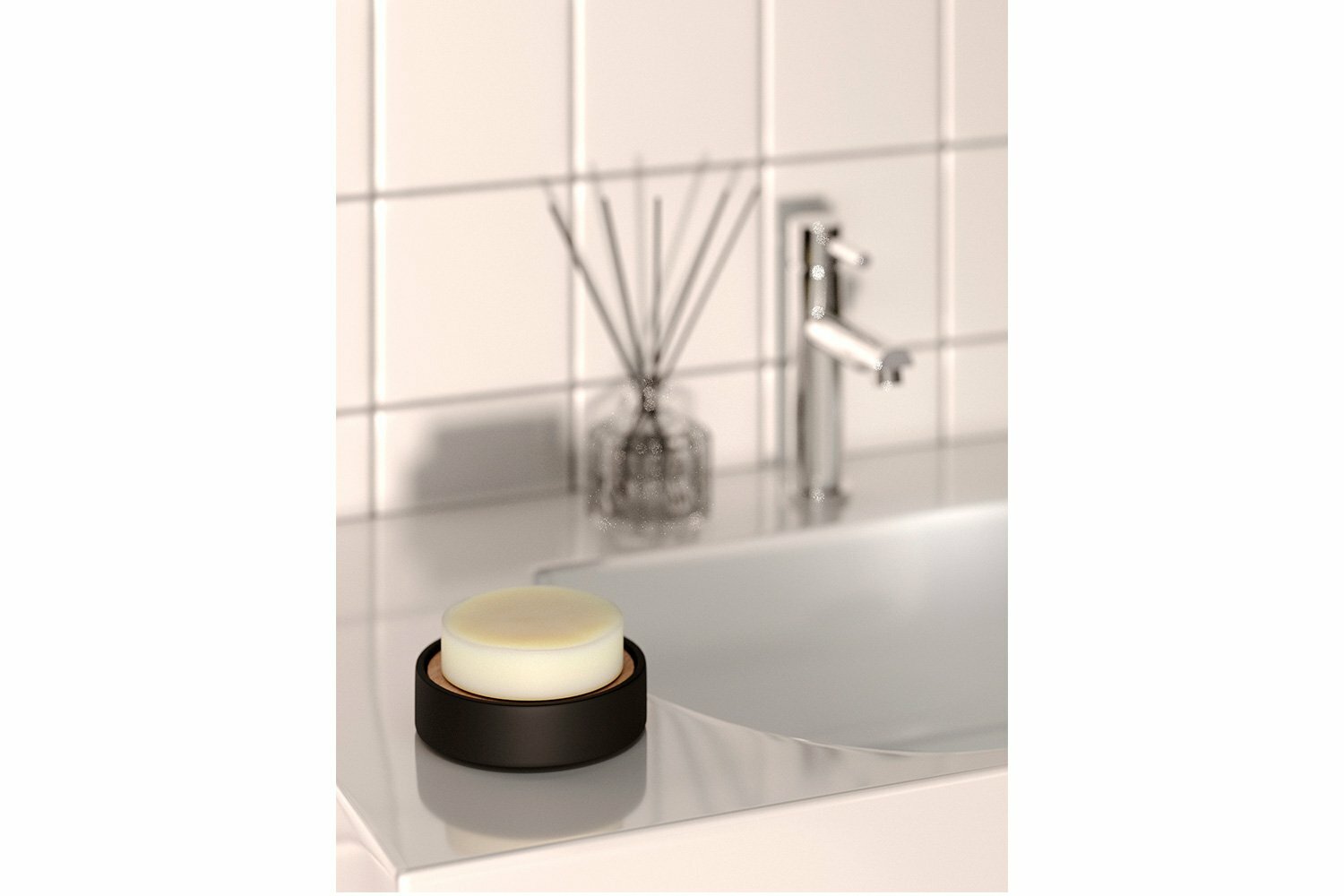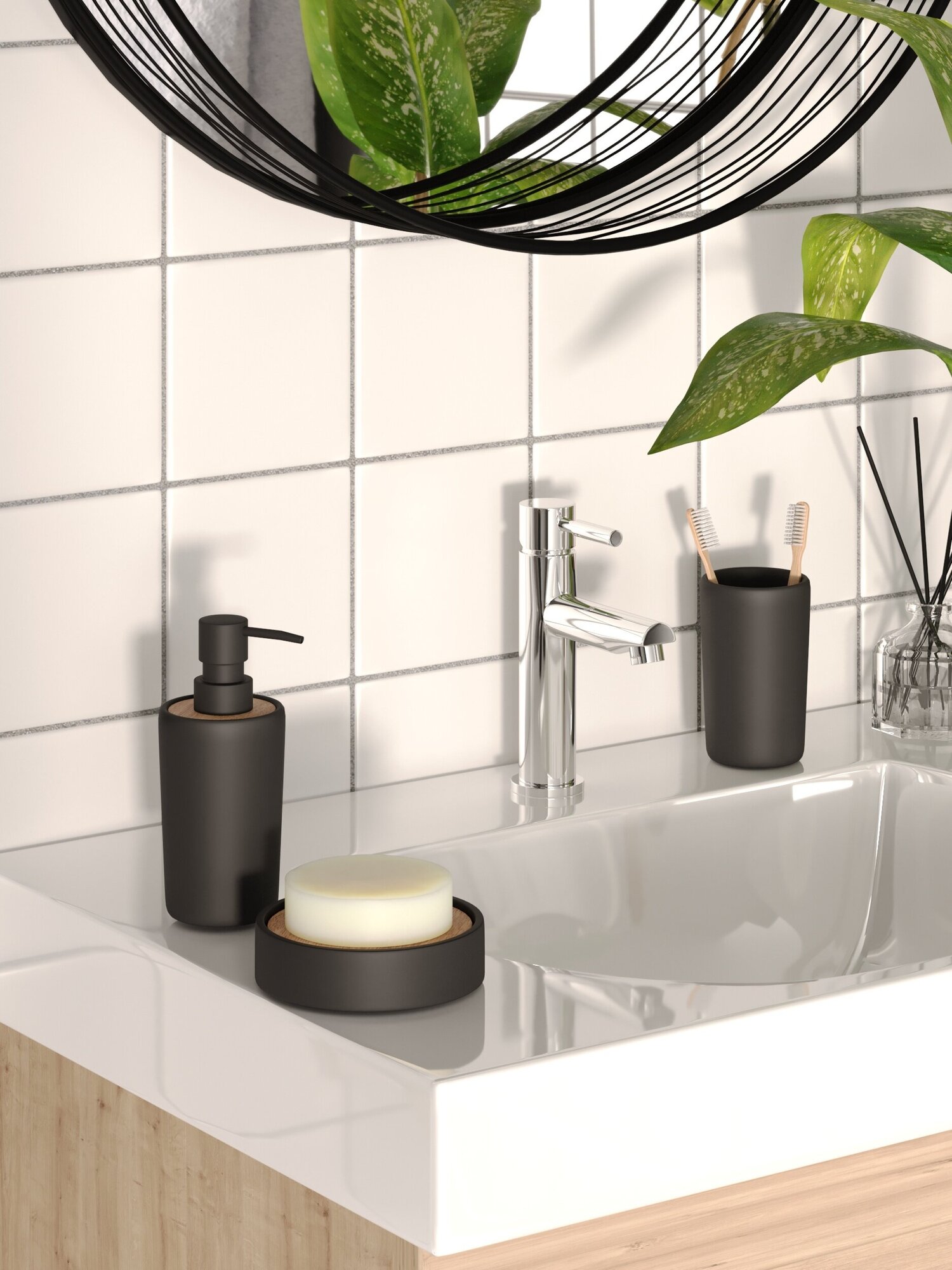 Мыльница для кускового мыла серия Blackwood имеет круглую форму. Все предметы для ванной комнаты серии Blackwood изготовлены из керамики имеют приятное на ощупь покрытие Soft-touch, а также вставку из натурального бамбука.Мыльница для кускового мыла керамическая Blackwood имеет вставку из экологичного материала бамбук с отверстиями для слива воды. Мыло всегда будет сухим и не размокнет. Бамбуковая вкладка легко вынимается из основания и за ней удобно ухаживать. Достаточно промыть под струей теплой воды. Серия аксессуаров для ванной комнаты Blackwood идеально впишется как в современный стиль Hight Tech, так и в минималистичный Лофт (Loft).Соберите всю коллекцию Blackwood:BCE0347AA-TOH ерш сантехнический керамический BlackwoodBCE0347AA-SD мыльница керамическая BlackwoodBCE0347AA-TB стакан для зубных щеток керамический Blackwood BCE0347AA-LD дозатор для жидкого мыла Blackwood