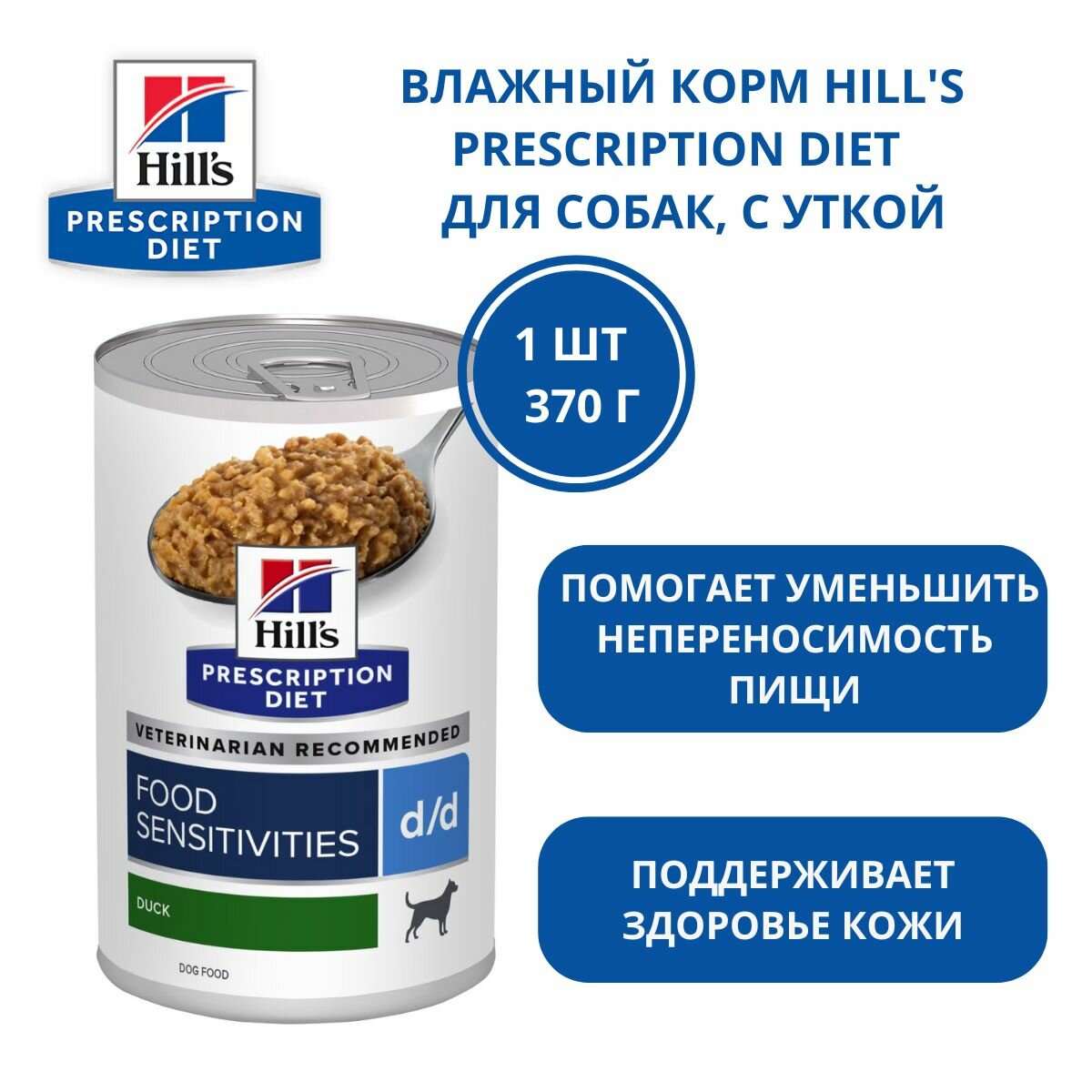 Hill's Корм консервированный d/d для собак при аллергии с уткой 370г