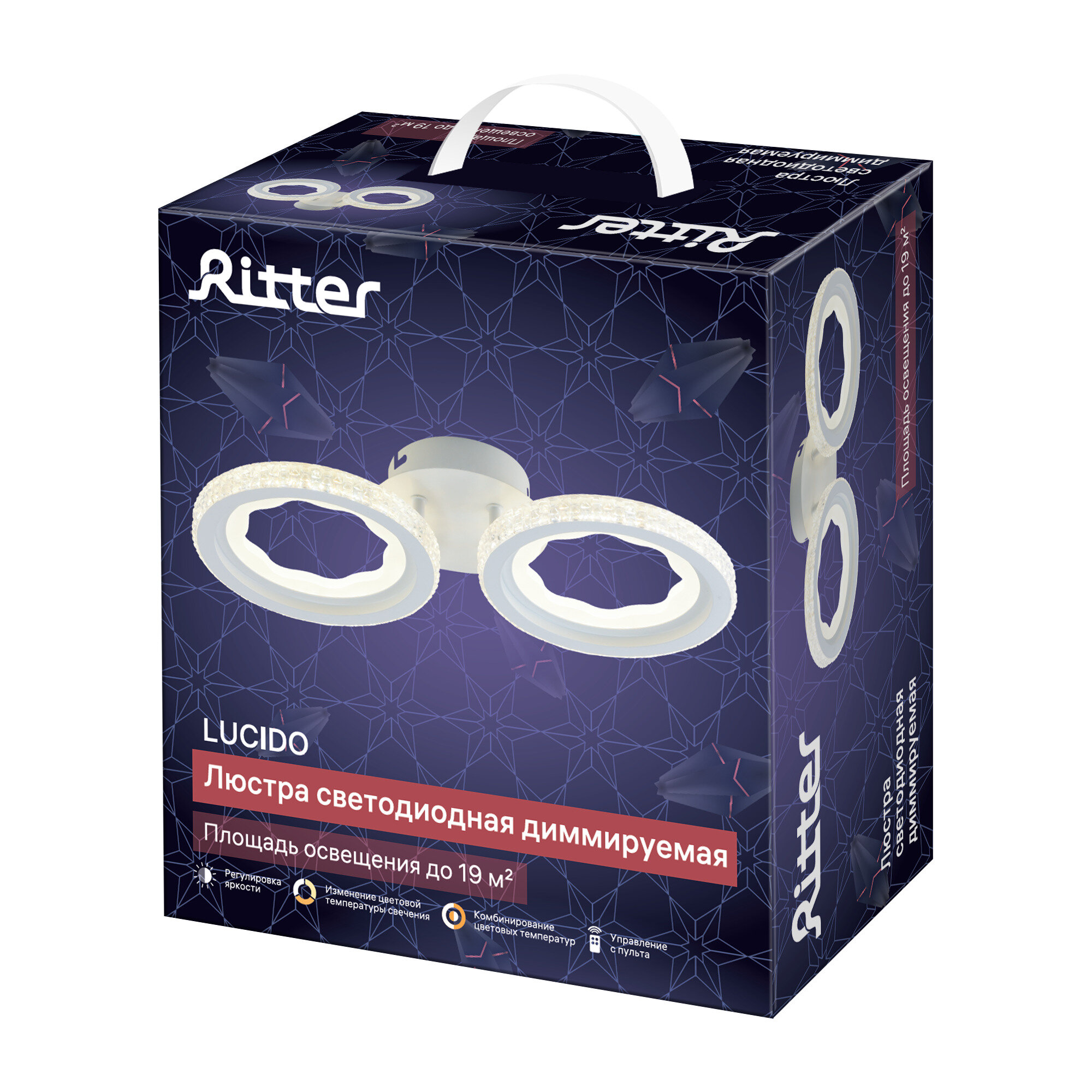 Потолочная светодиодная люстра Ritter LUCIDO - это отличный выбор для любых помещений площадью от 8 до 17 м2: гостиной, спальни, кухни, детской, студии, прихожей. Она удачно впишется в стили минимализм, неоклассика, лофт и другие. Люстра подходит для монтажа на все виды потолков — натяжные, подвесные, бетонные и др. Люстру из серии LUCIDO легко подключить и собрать. В выключенном состоянии она выглядит стильно и лаконично, а при включении обретает объемные контуры. Светодиодная люстра изготовлена из современных материалов, которые отличаются особой долговечностью — металла и акрила. Светодиоды, которыми оснащены световые элементы люстр Ritter, эффективны и экономичны. Они позволяют осветить помещения разной площади с минимальными затратами электроэнергии и имеют долгий срок службы. Светодиодные люстры современные, удобные и экономичные. Светодиодная люстра с пультом отличается, прежде всего, возможностью регулировать яркость освещения. Люстра Ritter LUCIDO имеет функцию регулировки яркости, три цветовых режима, а также ночник. С её помощью можно создать желаемую атмосферу в одно касание. Например, настроить яркость для бодрого утра, комфортного рабочего дня или романтического вечера. Теперь всегда можно подобрать наиболее подходящую яркость и температуру свечения для любой атмосферы и настроения. Способ управления всегда можно выбрать – какой предпочтительнее и удобнее. Заходя в помещение, можно включать освещение с помощью клавиши настенного выключателя, а перед сном – погасить свет с помощью пульта. Люстра также отлично подходит для детской комнаты: режим ночника позволяит ребенку чувствовать себя комфортно во время сна. Люстры Ritter украсят любой интерьер благодаря универсальному дизайну и станут неотъемлемой частью декора комнаты.Особенности - Управление пультом и выключателем. - Режим нейтрального свечения.- Регулировка яркости. - Режим ночника.Преимущества - Монтаж на любые виды потолков.- Подходит для низких потолков.- Универсальный белый цвет корпуса.- Долгая и безопасная эксплуатация.