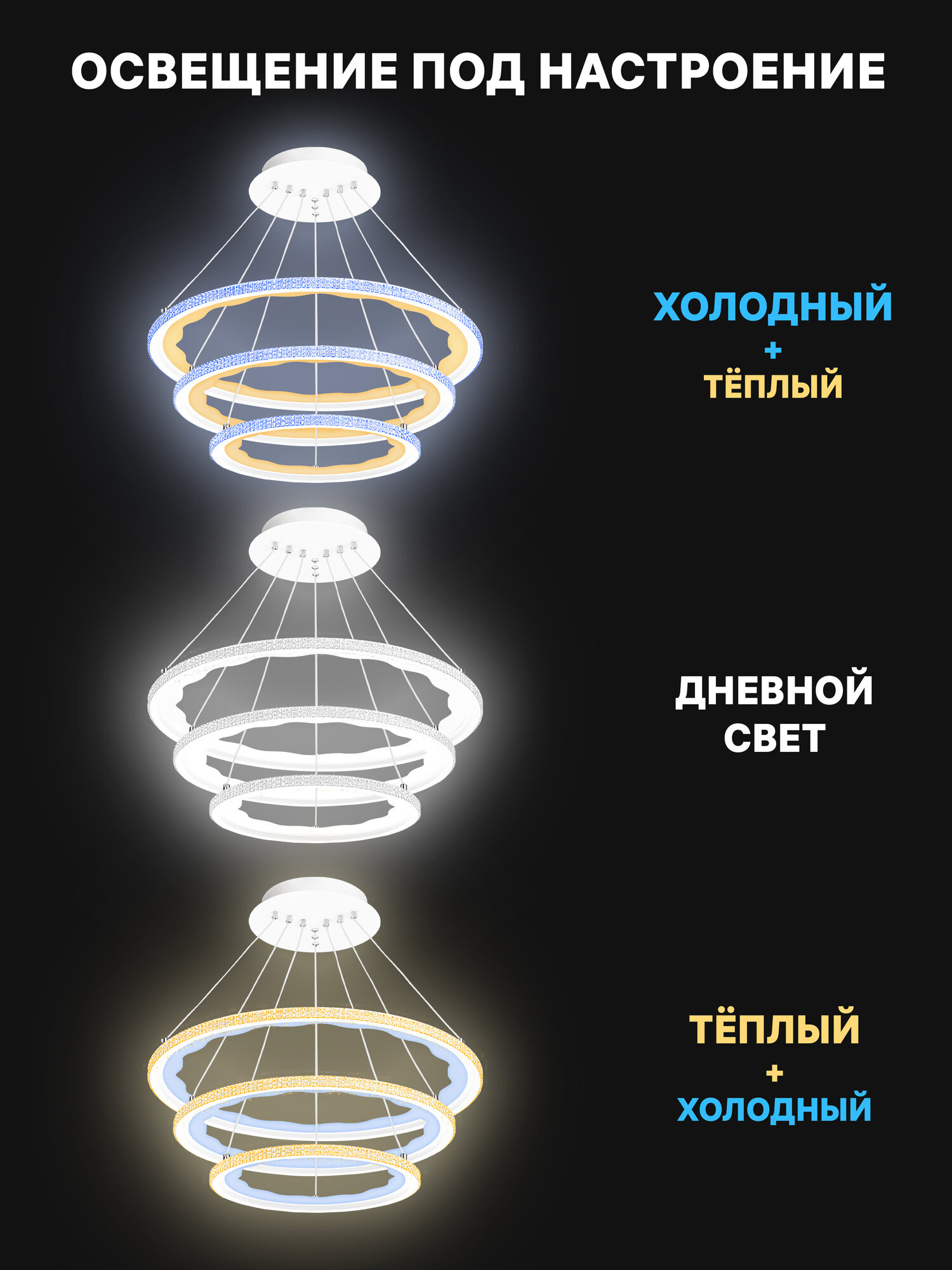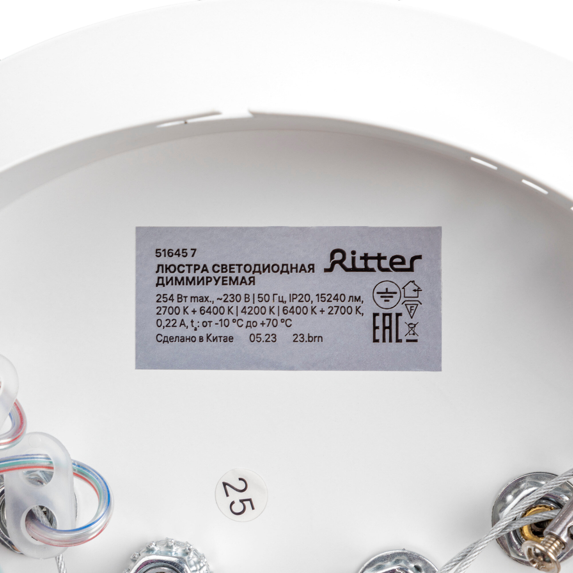 Потолочная светодиодная люстра Ritter LUCIDO - это отличный выбор для любых помещений площадью от 8 до 77 м2: гостиной, спальни, кухни, детской, студии, прихожей. Она удачно впишется в стили минимализм, неоклассика, лофт и другие. Люстра подходит для монтажа на все виды потолков — натяжные, подвесные, бетонные и др. Люстру из серии LUCIDO легко подключить и собрать. В выключенном состоянии она выглядит стильно и лаконично, а при включении обретает объемные контуры. Светодиодная люстра изготовлена из современных материалов, которые отличаются особой долговечностью — металла и акрила. Светодиоды, которыми оснащены световые элементы люстр Ritter, эффективны и экономичны. Они позволяют осветить помещения разной площади с минимальными затратами электроэнергии и имеют долгий срок службы. Светодиодные люстры современные, удобные и экономичные. Светодиодная люстра с пультом отличается, прежде всего, возможностью регулировать яркость освещения. Люстра Ritter LUCIDO имеет функцию регулировки яркости, три цветовых режима, а также ночник. С её помощью можно создать желаемую атмосферу в одно касание. Например, настроить яркость для бодрого утра, комфортного рабочего дня или романтического вечера. Теперь всегда можно подобрать наиболее подходящую яркость и температуру свечения для любой атмосферы и настроения. Способ управления всегда можно выбрать – какой предпочтительнее и удобнее. Заходя в помещение, можно включать освещение с помощью клавиши настенного выключателя, а перед сном – погасить свет с помощью пульта. Люстра также отлично подходит для детской комнаты: режим ночника позволяит ребенку чувствовать себя комфортно во время сна. Люстры Ritter украсят любой интерьер благодаря универсальному дизайну и станут неотъемлемой частью декора комнаты.Особенности - Управление пультом и выключателем. - Режим нейтрального свечения.- Регулировка яркости. - Режим ночника.Преимущества - Монтаж на любые виды потолков.- Подходит для низких потолков.- Универсальный белый цвет корпуса.- Долгая и безопасная эксплуатация.