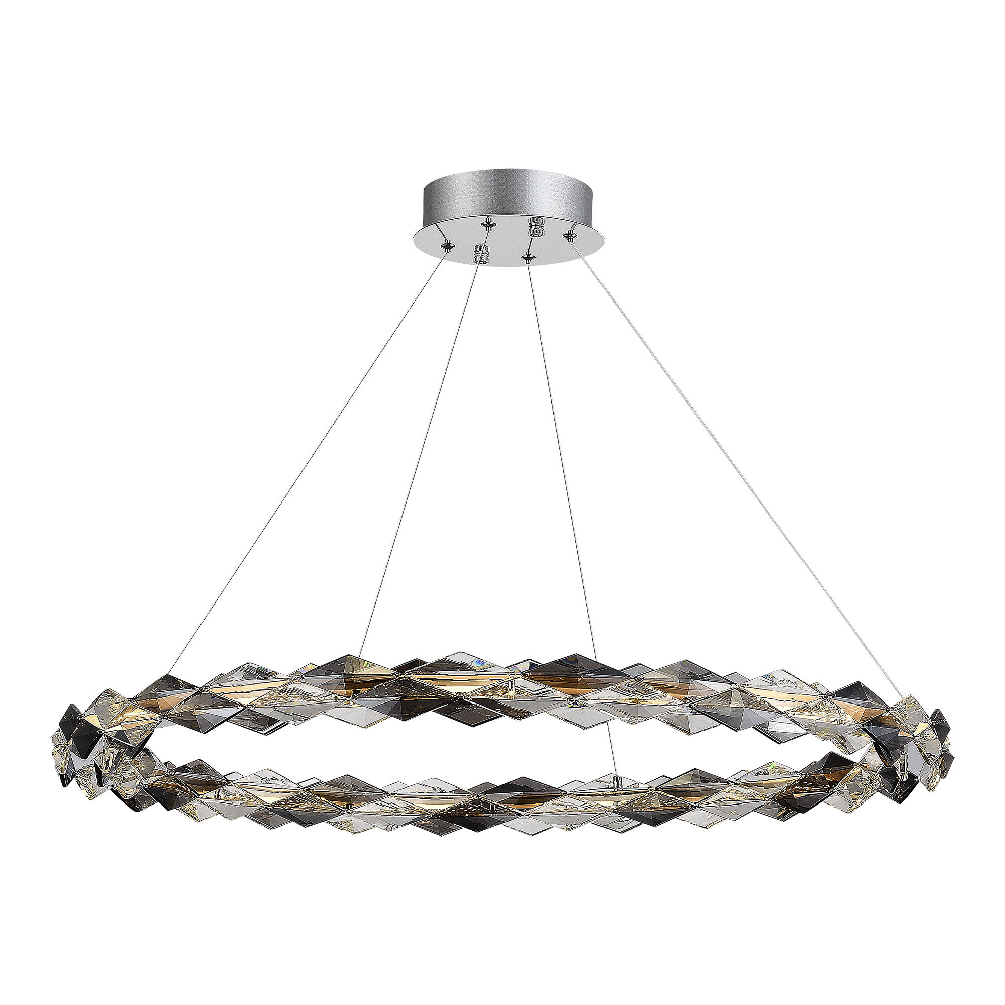 Сочетание тонированного и прозрачного стекла в форме ромбов придает стильную роскошь этим светодиодным кольцам. Два цветовых сочетания: янтарное стекло и золото и дымчатое стекло и хром позволяют вписать коллекцию Diamanta в любой интерьер.