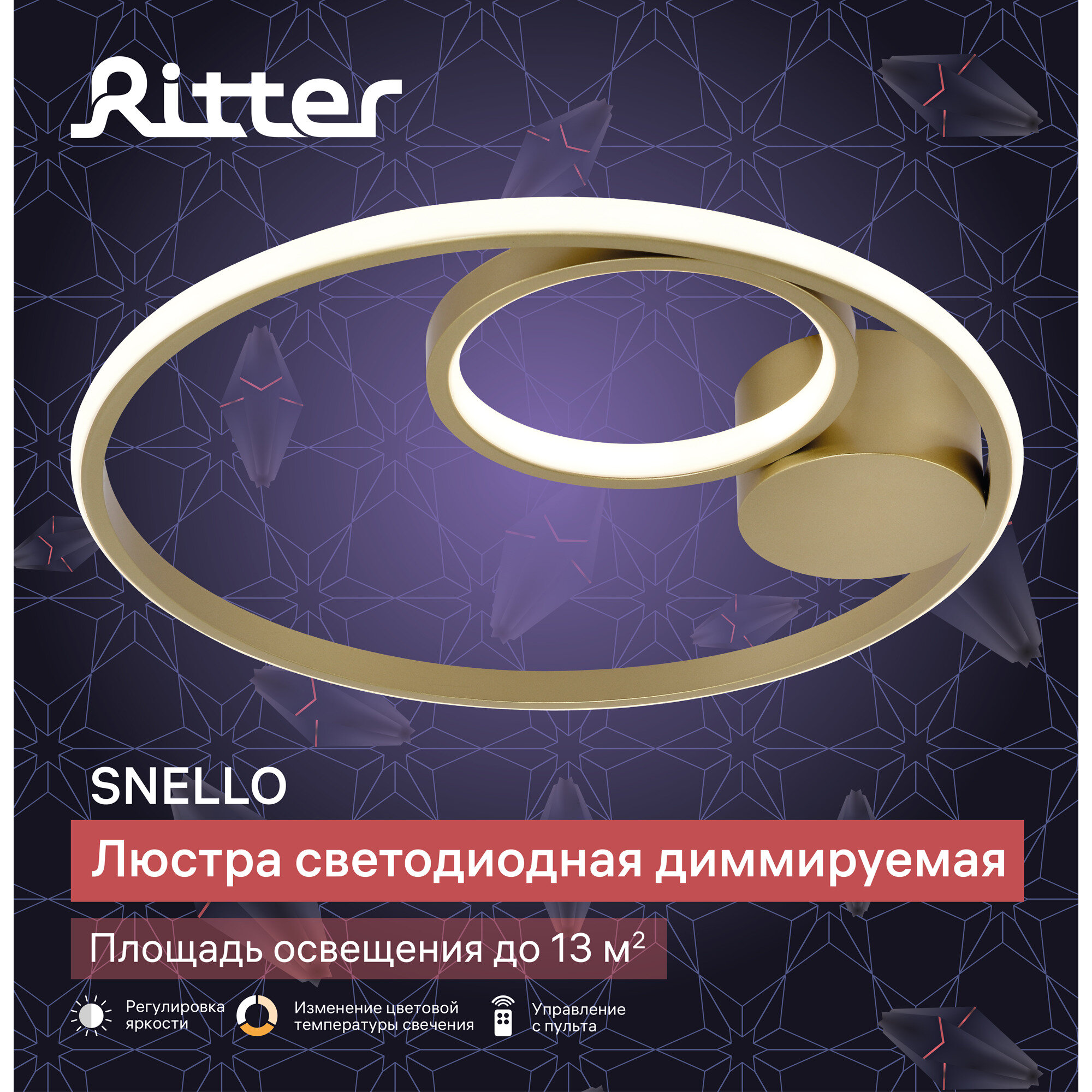 Потолочная светодиодная люстра Ritter SNELLO - это отличный выбор для любых помещений площадью до 13 м2: гостиной, спальни, кухни, детской, студии, прихожей. Она удачно впишется в стили минимализм, неоклассика, лофт и другие. Люстра подходит для монтажа на все виды потолков — натяжные, подвесные, бетонные и др. Люстру из серии SNELLO легко подключить и собрать. В выключенном состоянии она выглядит стильно и лаконично, а при включении обретает объемные контуры. Светодиодная люстра изготовлена из современных материалов, которые отличаются особой долговечностью — металла и силикона. Светодиоды, которыми оснащены световые элементы люстр Ritter, эффективны и экономичны. Они позволяют осветить помещения разной площади с минимальными затратами электроэнергии и имеют долгий срок службы. Светодиодные люстры современные, удобные и экономичные. Светодиодная люстра с пультом отличается, прежде всего, возможностью регулировать яркость освещения. Люстра Ritter SNELLO имеет функцию регулировки яркости, три цветовых режима, а также ночник. С её помощью можно создать желаемую атмосферу в одно касание. Например, настроить яркость для бодрого утра, комфортного рабочего дня или романтического вечера. Способ управления всегда можно выбрать – какой предпочтительнее и удобнее. Заходя в помещение, можно включать освещение с помощью клавиши настенного выключателя, а перед сном – погасить свет с помощью пульта. Люстра также отлично подходит для детской комнаты: режим ночника позволяит ребенку чувствовать себя комфортно во время сна. Люстры Ritter украсят любой интерьер благодаря универсальному дизайну и станут неотъемлемой частью декора комнаты. Особенности - Управление пультом и выключателем. - Режим нейтрального свечения. - Регулировка яркости. - Режим ночника. Преимущества - Монтаж на любые виды потолков. - Подходит для низких потолков. - Долгая и безопасная эксплуатация.