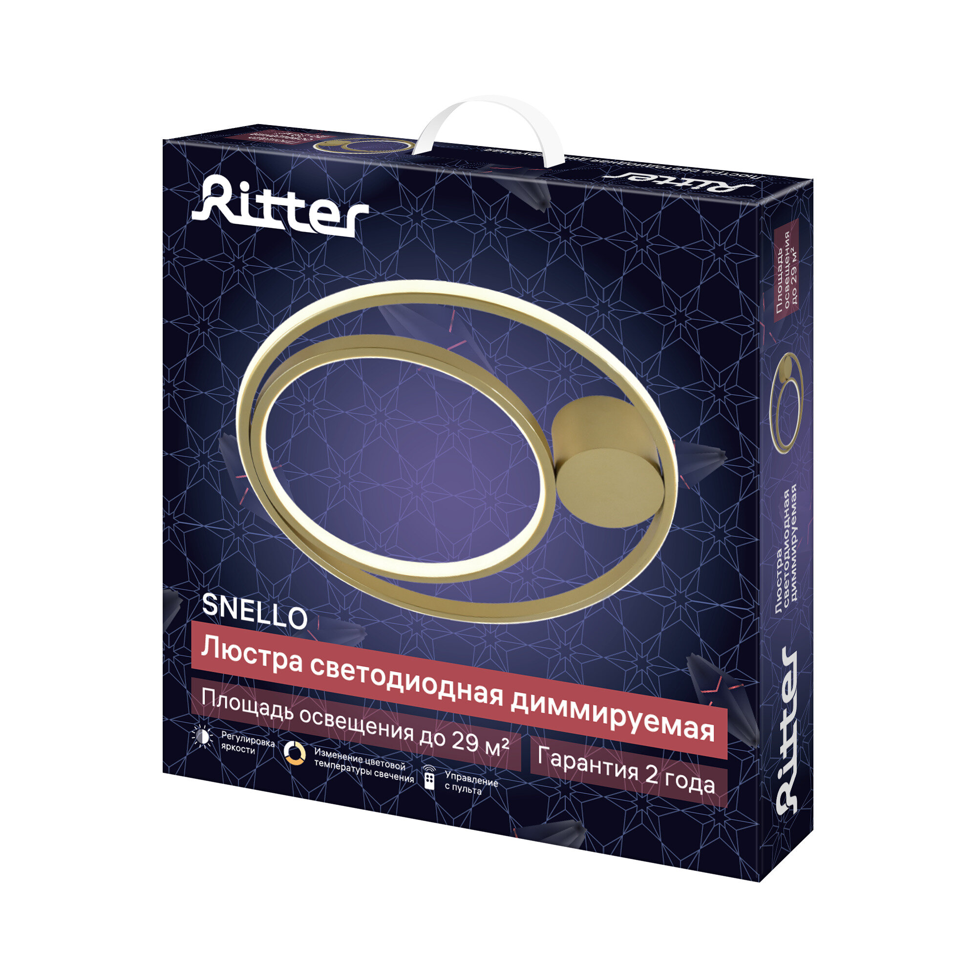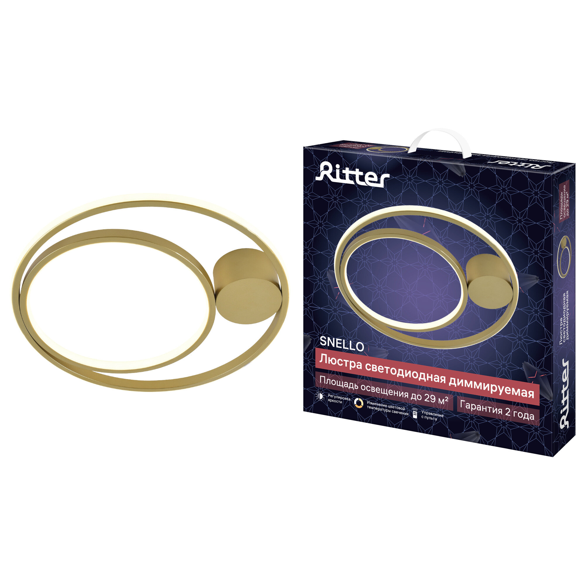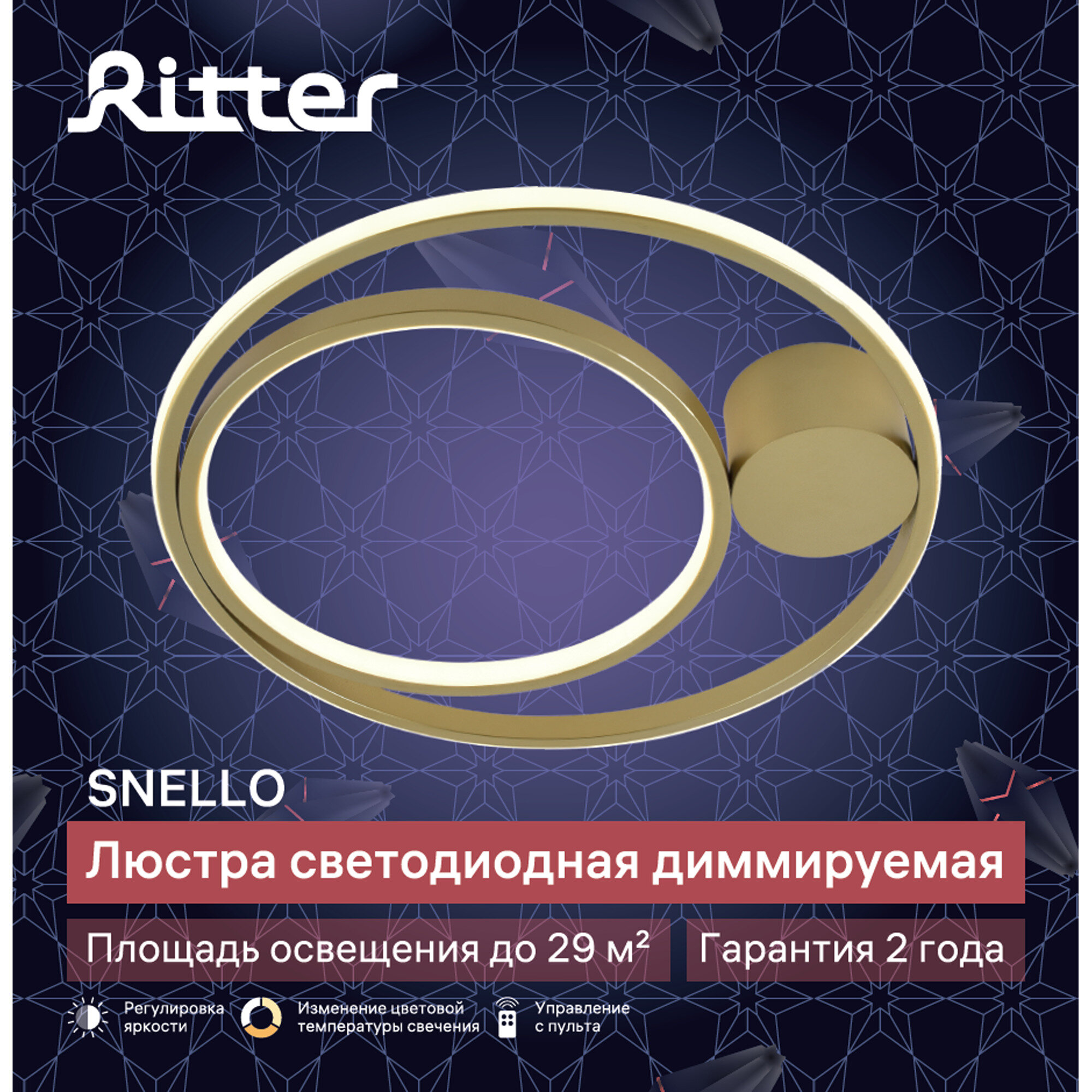 Потолочная светодиодная люстра Ritter SNELLO - это отличный выбор для любых помещений площадью до 29 м2: гостиной, спальни, кухни, детской, студии, прихожей. Она удачно впишется в стили минимализм, неоклассика, лофт и другие. Люстра подходит для монтажа на все виды потолков — натяжные, подвесные, бетонные и др. Люстру из серии SNELLO легко подключить и собрать. В выключенном состоянии она выглядит стильно и лаконично, а при включении обретает объемные контуры. Светодиодная люстра изготовлена из современных материалов, которые отличаются особой долговечностью — металла и пластика. Светодиоды, которыми оснащены световые элементы люстр Ritter, эффективны и экономичны. Они позволяют осветить помещения разной площади с минимальными затратами электроэнергии и имеют долгий срок службы. Светодиодные люстры современные, удобные и экономичные. Светодиодная люстра с пультом отличается, прежде всего, возможностью регулировать яркость освещения. Люстра Ritter SNELLO имеет функцию регулировки яркости, три цветовых режима, а также ночник. С её помощью можно создать желаемую атмосферу в одно касание. Например, настроить яркость для бодрого утра, комфортного рабочего дня или романтического вечера. Способ управления всегда можно выбрать – какой предпочтительнее и удобнее. Заходя в помещение, можно включать освещение с помощью клавиши настенного выключателя, а перед сном – погасить свет с помощью пульта. Люстра также отлично подходит для детской комнаты: режим ночника позволяет ребенку чувствовать себя комфортно во время сна. Люстры Ritter украсят любой интерьер благодаря универсальному дизайну и станут неотъемлемой частью декора комнаты. Особенности - Управление пультом и выключателем. - Режим нейтрального свечения. - Регулировка яркости. - Режим ночника. Преимущества - Монтаж на любые виды потолков. - Подходит для низких потолков. - Долгая и безопасная эксплуатация.