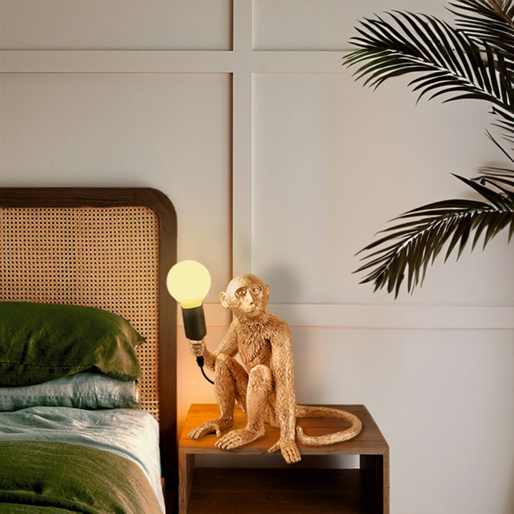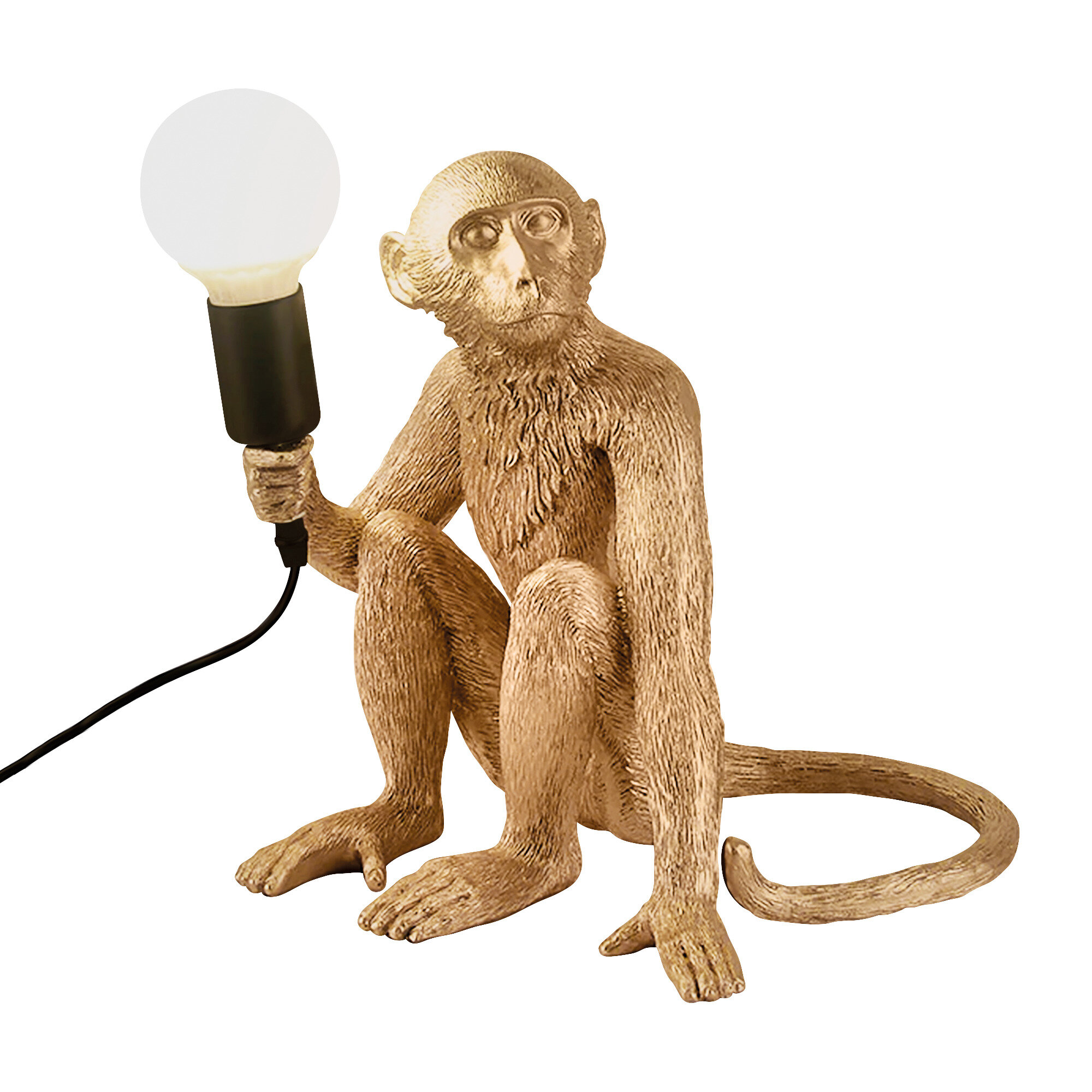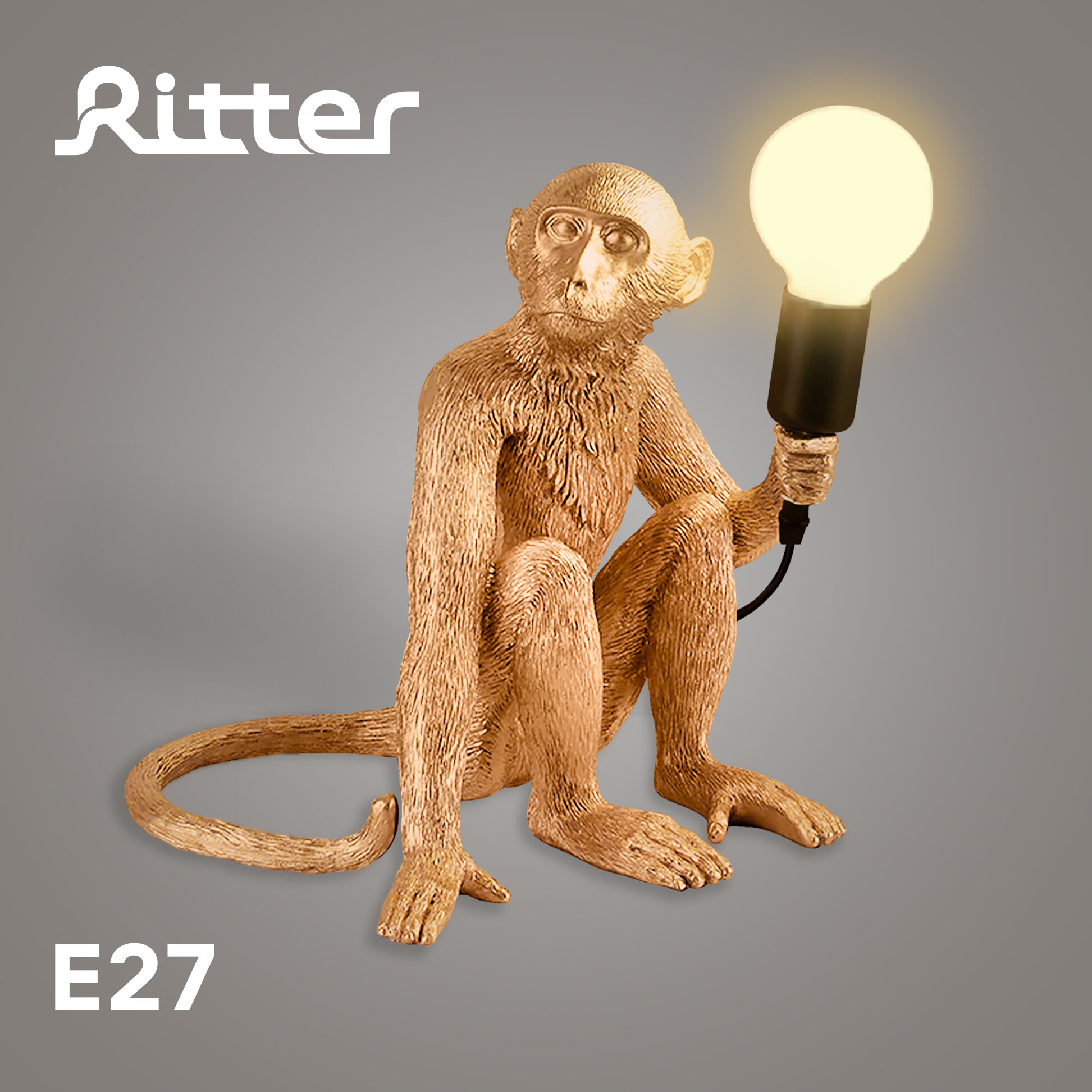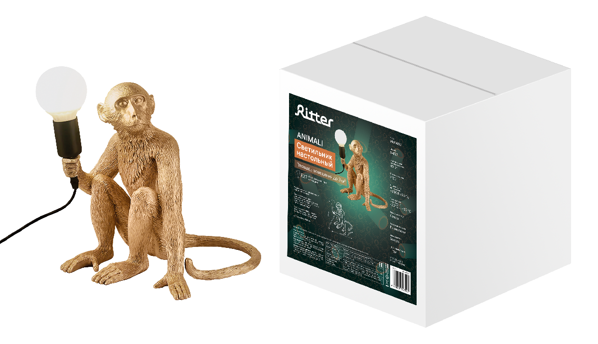 Настольный светильник серии ANIMALI. Обезьянка, держит в руке лампочку – светильник серии ANIMALI выполнит роль оригинального декора и поднимет вам настроение. Светильник относится к декоративно-художественному освещению. Он удачно впишется в стили минимализм, неоклассика, ар-деко, модерн и другие. Также используется для локальной подсветки зон и расстановки акцентов в интерьере. Дизайнерский светильник изготовлен из экологичного материала — смолы. Светильник из серии ANIMALI легко подключить, длина шнура питания 1,8 м. Для подключения светильника Вам понадобится 1 лампа с цоколем Е27. Максимально допустимая мощность на один цоколь для ламп накаливания 40 Вт. Лампочка в комплект не входит.
