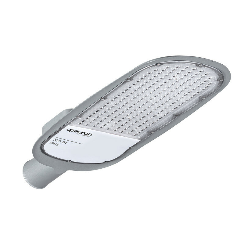Консольный светодиодный светильник излучает световой поток в 22000 Лм, потребляя при этом 200 Вт, что является эквивалентом лампы ДРЛ 1000 Вт. Он отлично подойдет для освещения второстепенных дорог класса B и C, парковок, площадей, ж/д платформ, автозаправочных станций. Рекомендуемая высота установки 8-10 метров от поверхности земли. В светильнике используются светодиоды с дневным белым цветом свечения и цветовой температурой 5000 К, которая близка к естественному солнечному свету и наиболее комфортна для глаз. Корпус светильника имеет мощные ребра охлаждения, изготовлен из алюминиевого сплава с размерами 595х230х80мм. Рассеиватель изготовлен из поликарбоната, устойчивого к воздействию температур и солнечному свету, сохранит свою прозрачность и качество на протяжении всего срока службы. Благодаря линзам на рассеивателе, которые установлены напротив каждого светодиода, светильник имеет кривую силы света Ш и рассеивает световой поток под углом 140°/70°. Обеспечивает равномерное широкое освещение дорожного полотна с захватом тротуаров. В светильнике используется драйвер, который имеет дополнительную защиту от пыли и влаги, а также защиту от скачков напряжения, что обеспечит стабильное освещение даже при скачках напряжения в сети в диапазоне 85-265 В. Благодаря тому, что драйвер размещен отдельно от платы со светодиодами, а корпус светильника хорошо отводит тепло, освещение будет радовать долгие годы. Светильник предназначен для установки на кронштейн с посадочным диаметром O50-60 мм.Преимущества:- Полная защита от проникновения пыли, влаги и механических повреждений;- Высокая ветроустойчивость и защита от обледенения;- Широкое распределение светового потока по дорожному полотну;- Световая отдача 110 Лм/Вт;- Защита от импульсных помех;- Высокоэффективный изолированный драйвер с коэффициентом мощности PF>0,95.