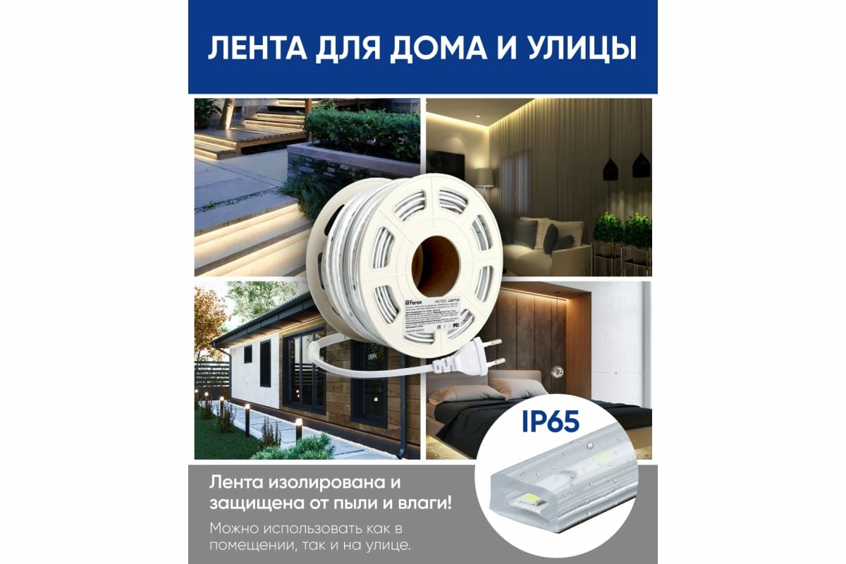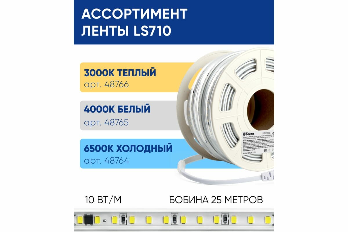 Светодиодная влагозащищенная лента Feron 10W/m 120LED/m 2835SMD дневной белый 25M LS710 / 48765