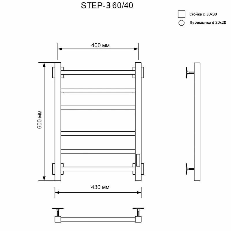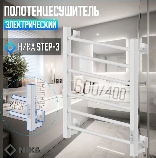 Полотенцесушитель электрический Ника Step 3 60/40 матовый белый RAL9016 STEP-3 60/40 бел мат U