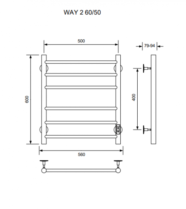 Полотенцесушители Way-3 с сухим ТЭНом имеет встроенный терморегулятор, который позволяет выбрать максимально комфортную температуру, а функция отключения при нагреве позволяет значительно экономить электроэнергию. А так же, имеет выключатель на корпусе для удобства отключения электропитания. Электрический полотенцесушитель Ника коллекции WAY - это отличное решение для ванной комнаты любого стиля и размера.