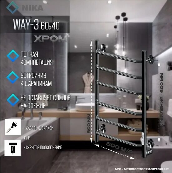 Сервис сравнения цен СкидкаГИД предлагает сравнить цены на товар «Полотенцесушитель электрический Ника Way 3 60/40 матовый черный RAL9005 WAY-3 60/40 черн U»