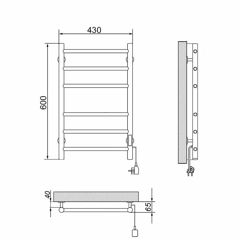 Полотенцесушитель электрический Ника Way 3 60/40 матовый черный RAL9005 WAY-3 60/40 черн U