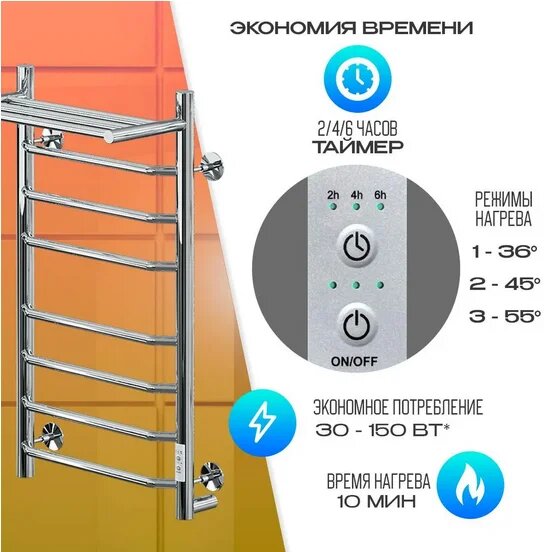 Полотенцесушители Way-3 с сухим ТЭНом имеет встроенный терморегулятор, который позволяет выбрать максимально комфортную температуру, а функция отключения при нагреве позволяет значительно экономить электроэнергию. А так же, имеет выключатель на корпусе для удобства отключения электропитания. Электрический полотенцесушитель Ника коллекции WAY - это отличное решение для ванной комнаты любого стиля и размера.
