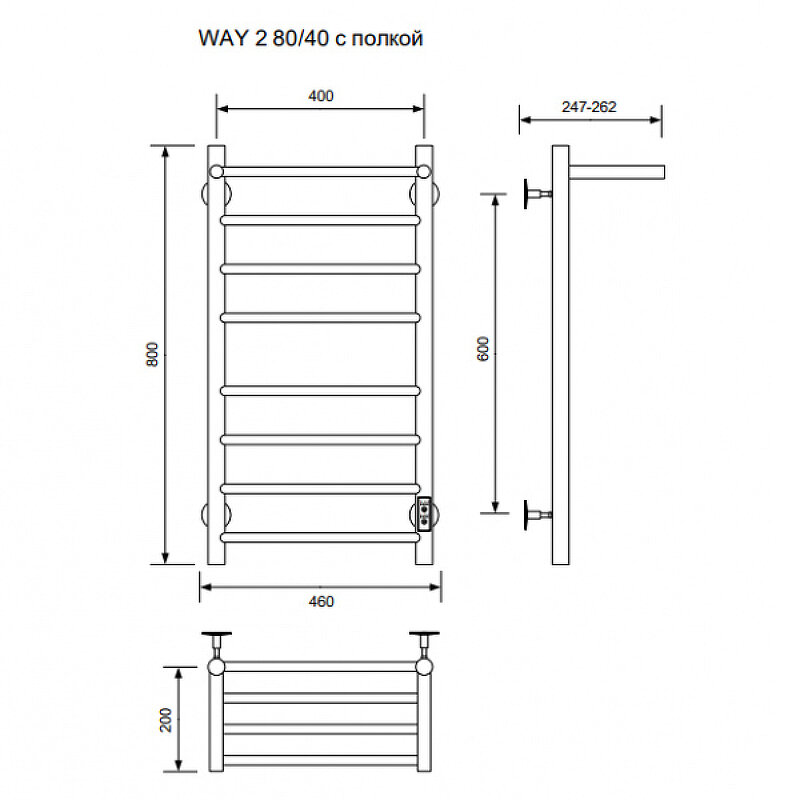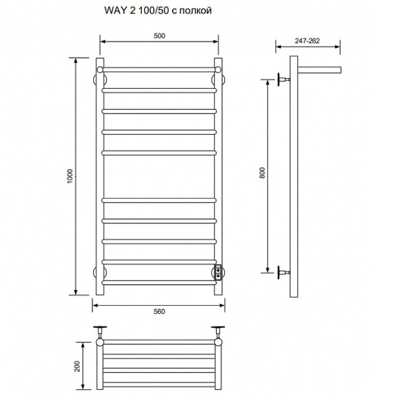 Полотенцесушитель электрический Ника Way 2 60/50 с полкой хром WAY-2 60/50 с/п U