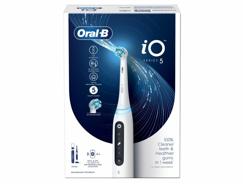 Интерактивный черно-белый дисплей отображает важную информацию и позволяет выбирать между 5 режимами чистки. Разработанная со стоматологами круглая насадка профессионально очищает с помощью технологии возвратно-вращательных движений и микровибраций. Умный датчик давления сигнализирует красным световым сигналом о чрезмерном надавливании и зеленым — о правильной чистке. Интерактивный дисплей отображает и позволяет выбирать между 5 режимами чистки, информацию об износе сменной насадки и 2-минутный таймер, обеспечивая уникальную персонализированную процедуру чистки. iO сочетает в себе уникальную круглую насадку Oral-B с бережной энергией очищения микровибрирующих щетинок.