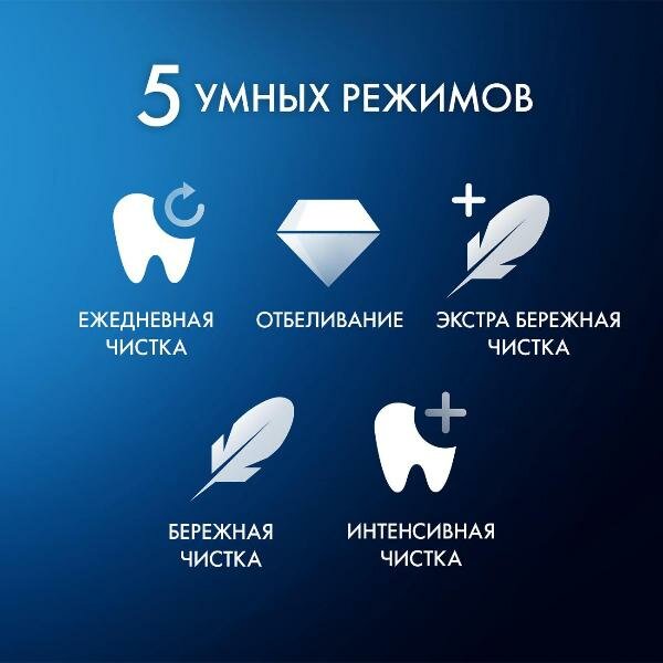 Эта щётка с таймером и пятью режимами чистки стала настоящим открытием. Использую её примерно месяц, и результат вчеатляет. Чистота зубов ощущается по-новому она мягко и деликатно очищает, не царапая десны, а режим ухода за деснами просто находка. кроме того, приложение добавляет интерес к процессу — теперь вижу свои достижения и могу отслеживать прогресс. рекомендую эту модель всем, кто хочет улучшить уход за полостью рта особенно если чувствительные зубы. Уверен, она станет отличным помощником в ежедневной гигиене.
