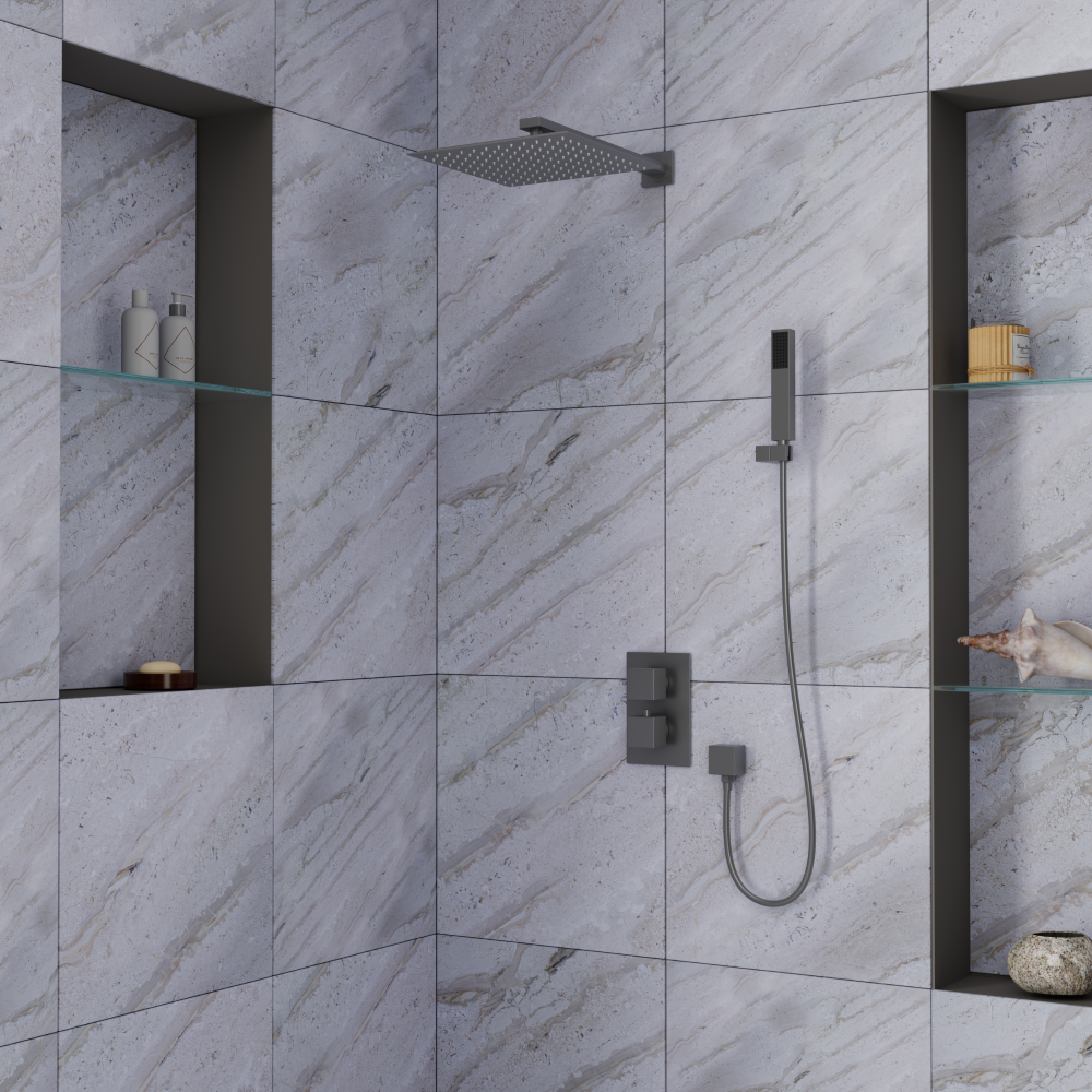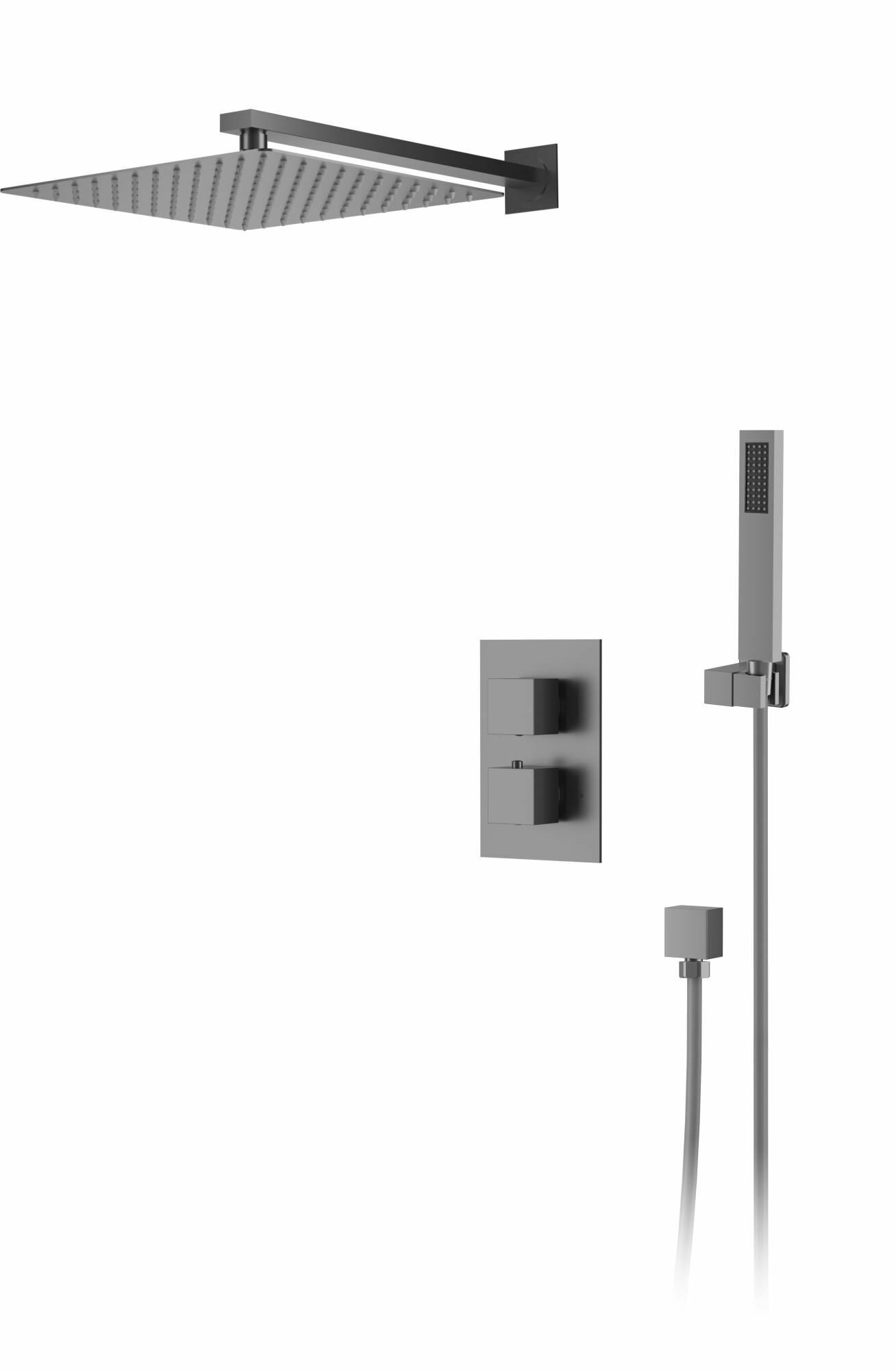 Душевая система D&K Bayern.Liszt с термостатом - современный и актуальный дизайн, вобравший в себя ключевые тренды и отвечающий реальным запросам сегодняшнего дня с выбором популярного цветового решения серый графит поможет создать идеальную кухню и ванную комнату каждому. Смеситель из латуни высокого качества, безопасен для людей и домашних животных из-за пониженного содержания свинца. Смеситель протестирован на 500 000 циклов включения, что составляет более 30 лет повседневного использования, семьи из четырёх человек. Душевая лейка и шланг длинной 150 см уже в комплекте.