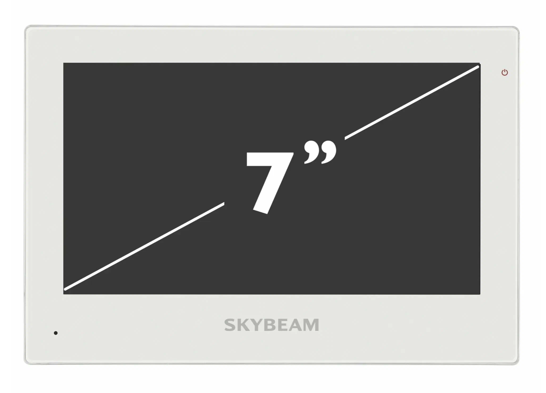 **Видеодомофон Skybeam** оснащен ярким 7" экраном и сенсорными кнопками и управлением через Wi-Fi. Совместим с аналоговыми вызывными панелями стандарта PAL. Предназначен для удобства управления открыванием и закрыванием входных дверей, а также контроля доступом посетителей. Позволяет охватывать большое пространство перед входом. Благодаря возможности подключения двух видеокамер практически исключается наличие мертвых зон.