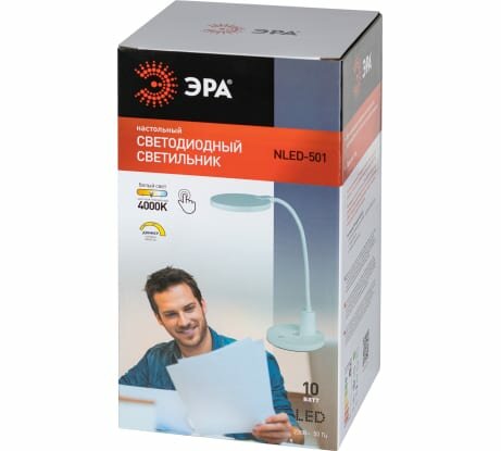 Настольная лампа светодиодная Эра LED-501-10W-W нейтральный белый свет цвет белый с регулировкой яркости Б0059839