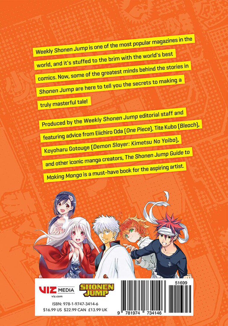 Featuring commentary and advice from Eiichiro Oda (One Piece), Tite Kubo (Bleach), Shun Saeki (Food Wars), Kaiu Shirai & Posuka Demizu (The Promised Neverland), Yusei Matsui (Assassination Classroom), Kohei Horikoshi (My Hero Academia), and more!