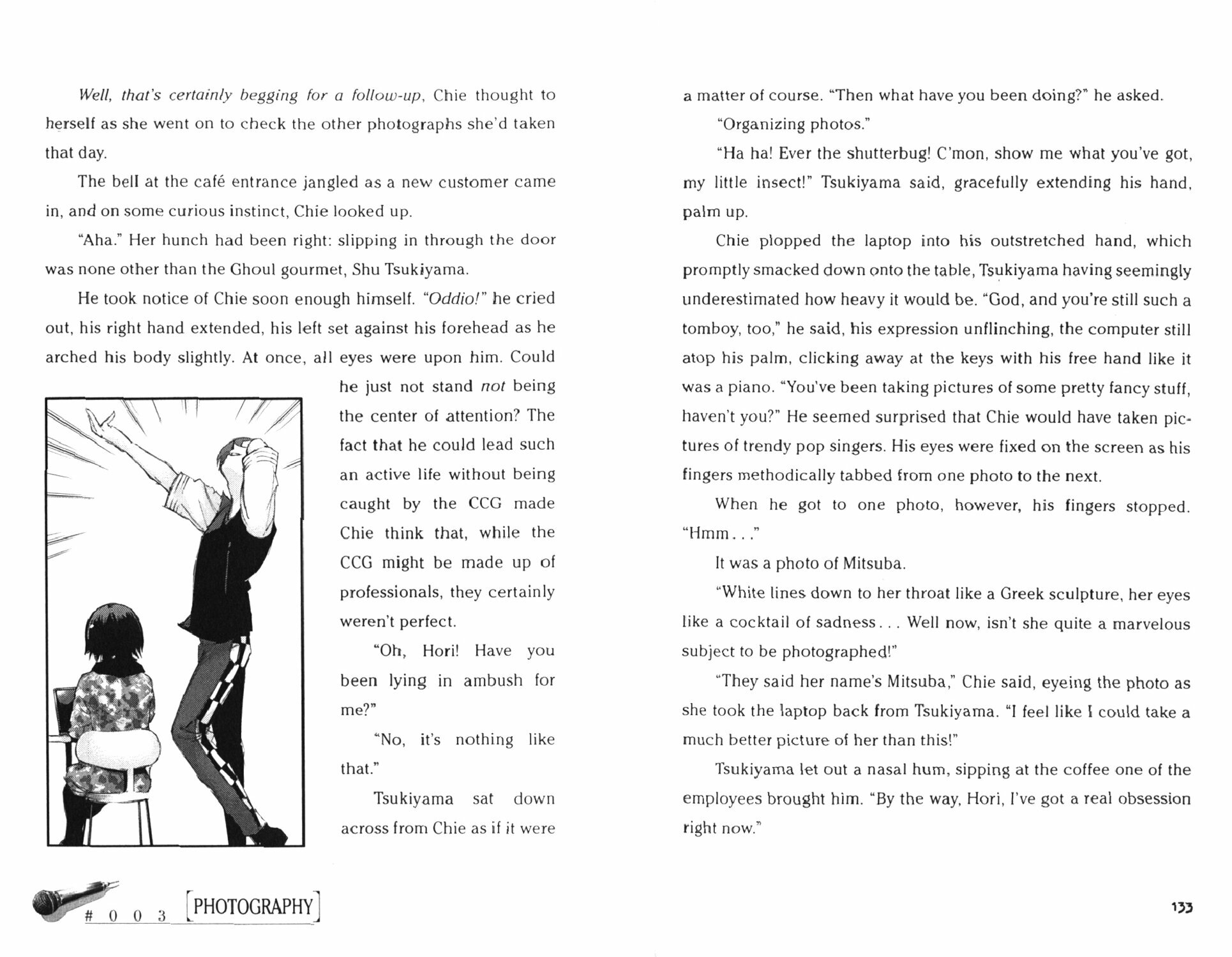 After the unprecedented raid on the Ghoul detention center by The Aogiri Tree organization, the Commission of Counter Ghoul is working to tighten security across the twenty-three wards. However, some Ghouls begin to cause unrest in the 8th Ward, continuing the cycle of retaliation between human and Ghoul. And what of Kaneki after he left the 20th Ward? This second novel depicts the aftermath six months after the 11th Ward occupation.